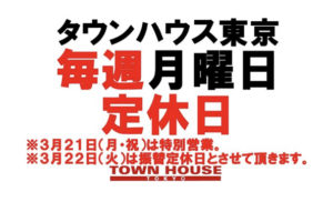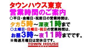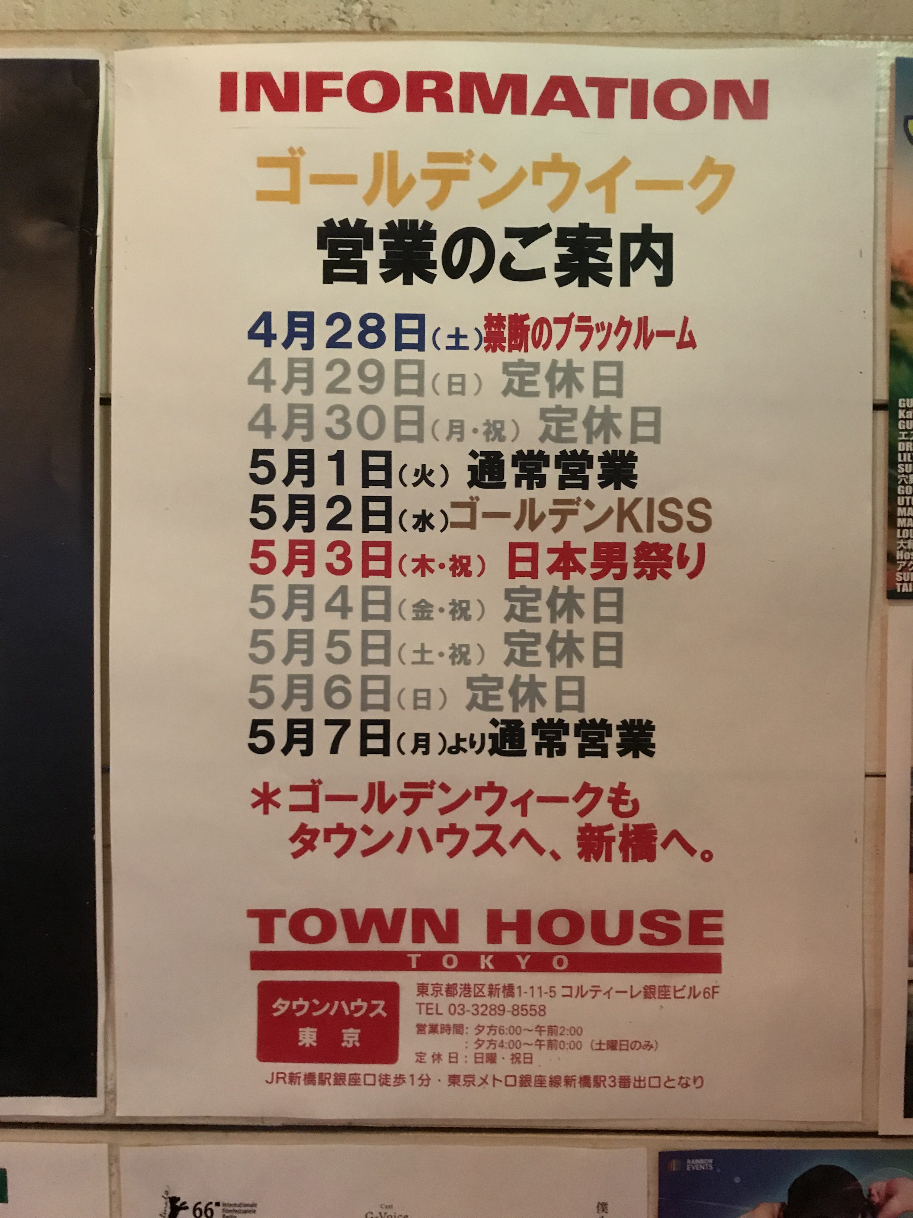 タウンハウスのゴールデンウィークの営業のご案内がタウンハウス東京・ホームページ・初ブログフォトです。