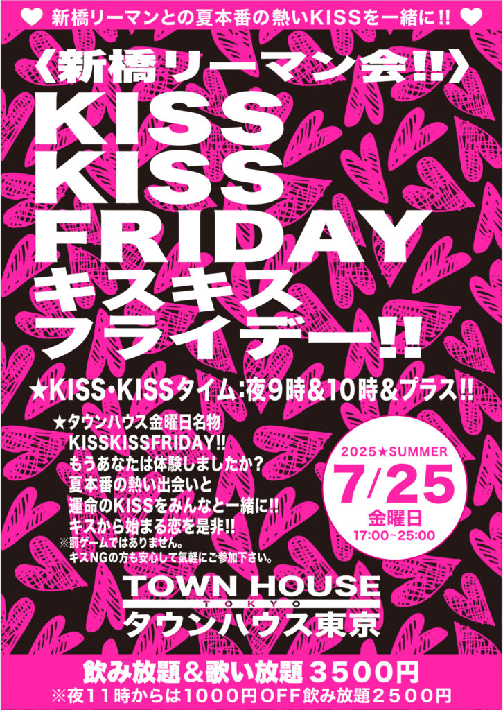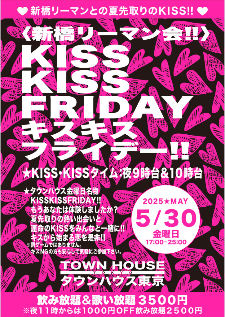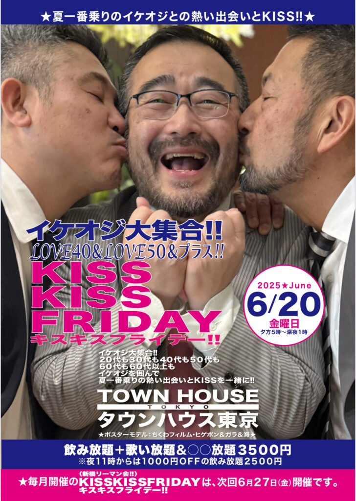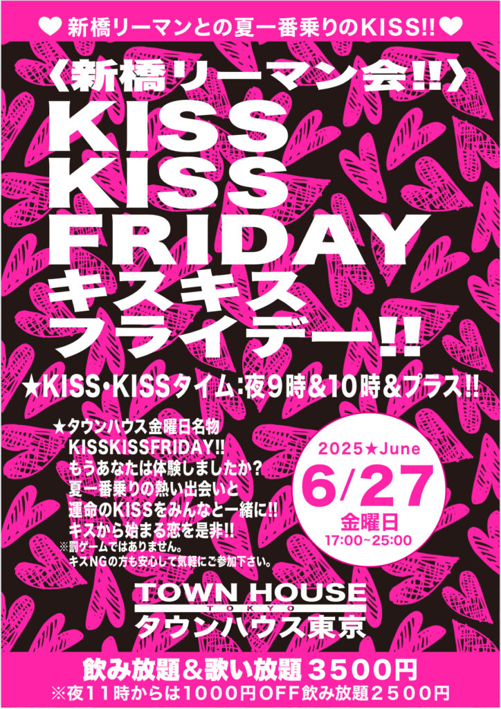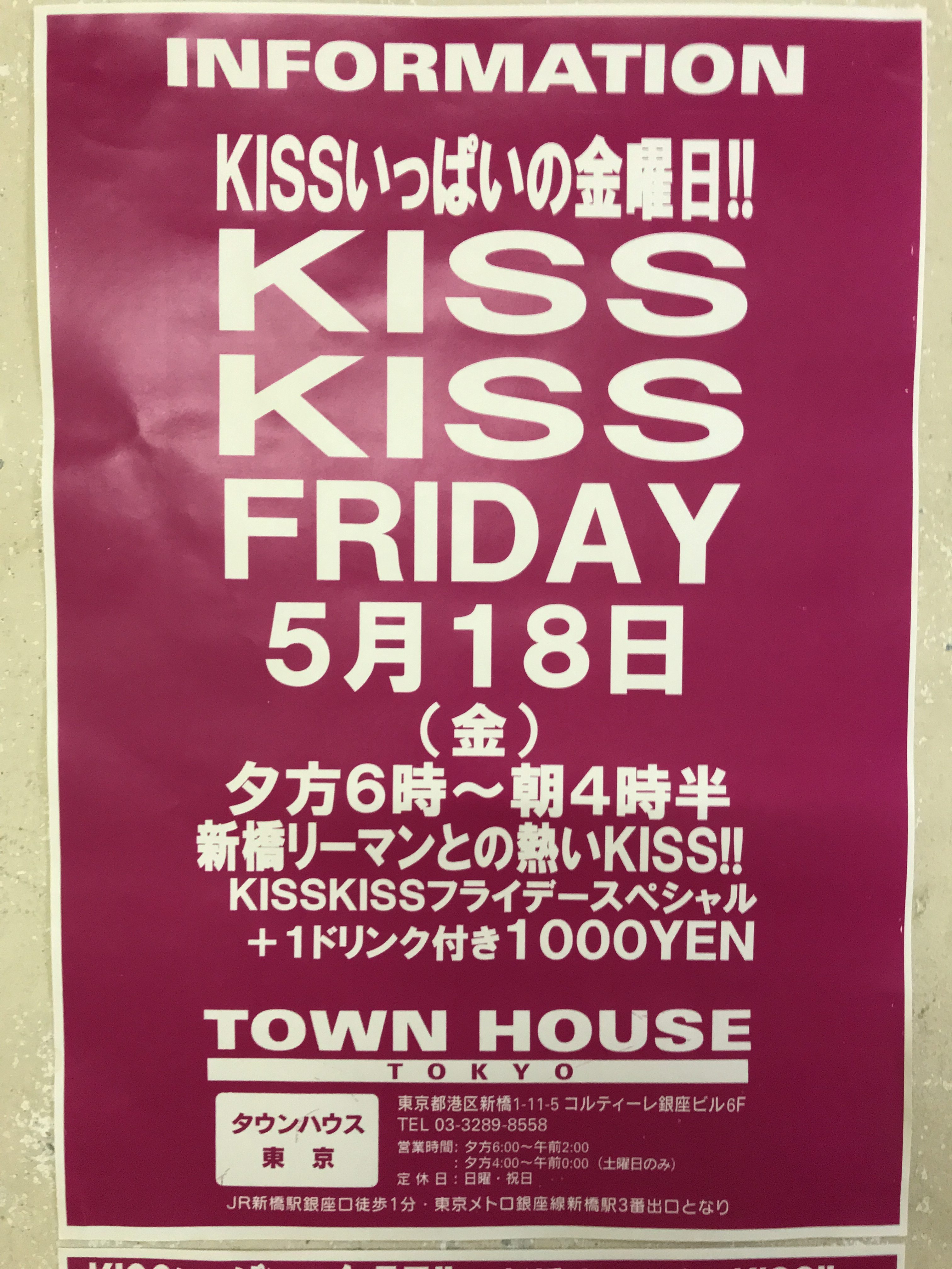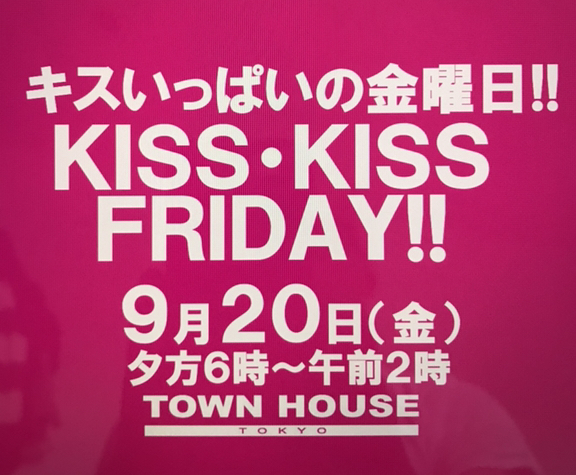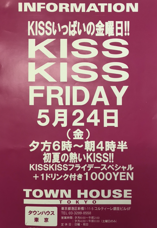 そして、いよいよ来週金曜日は、タウンハウス一番人気の金曜日、キスいっぱいの金曜日、KISS KISS FRIDAY