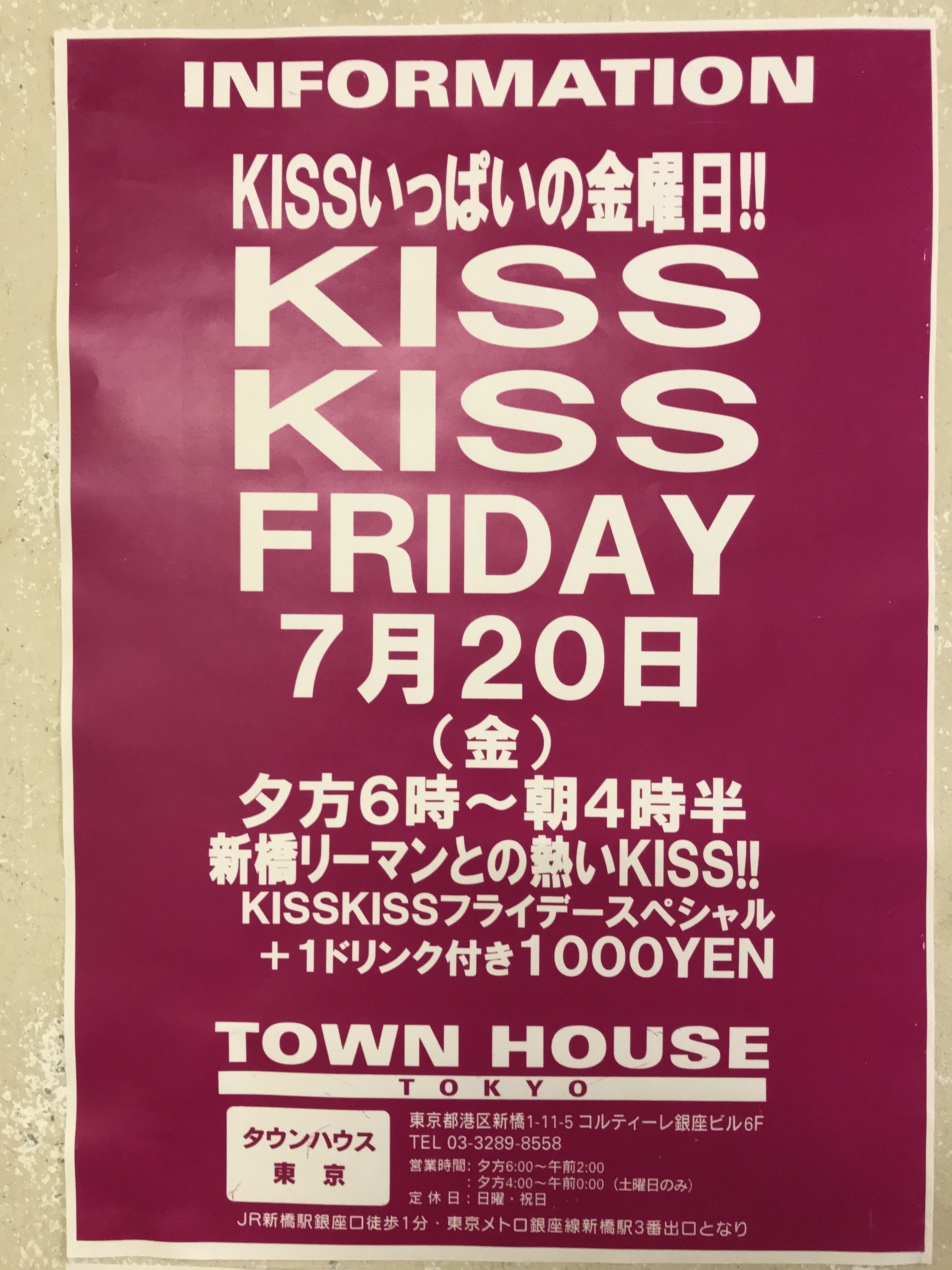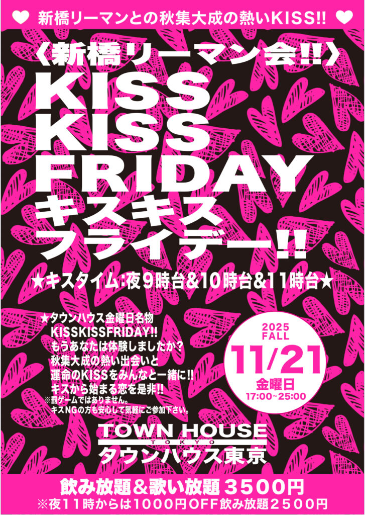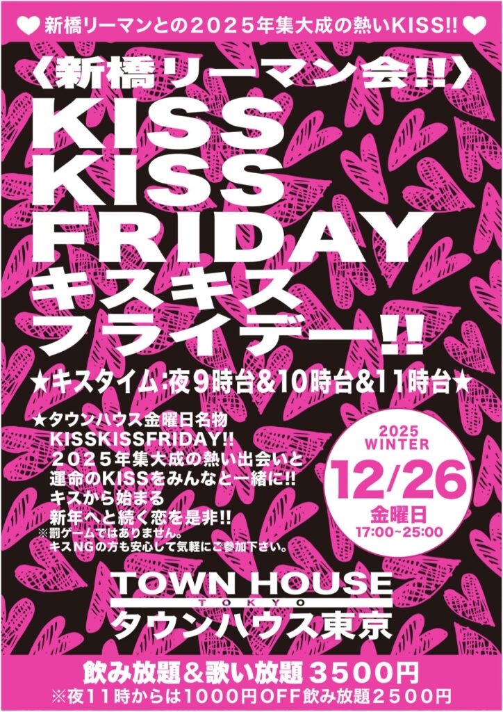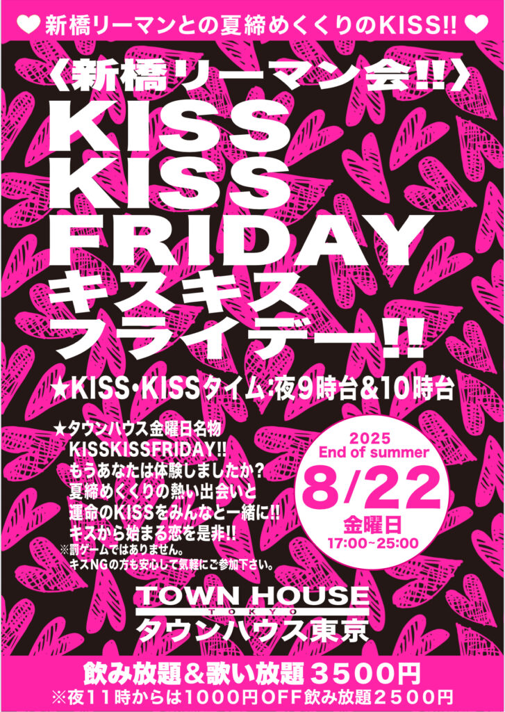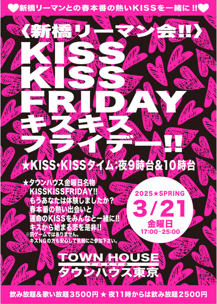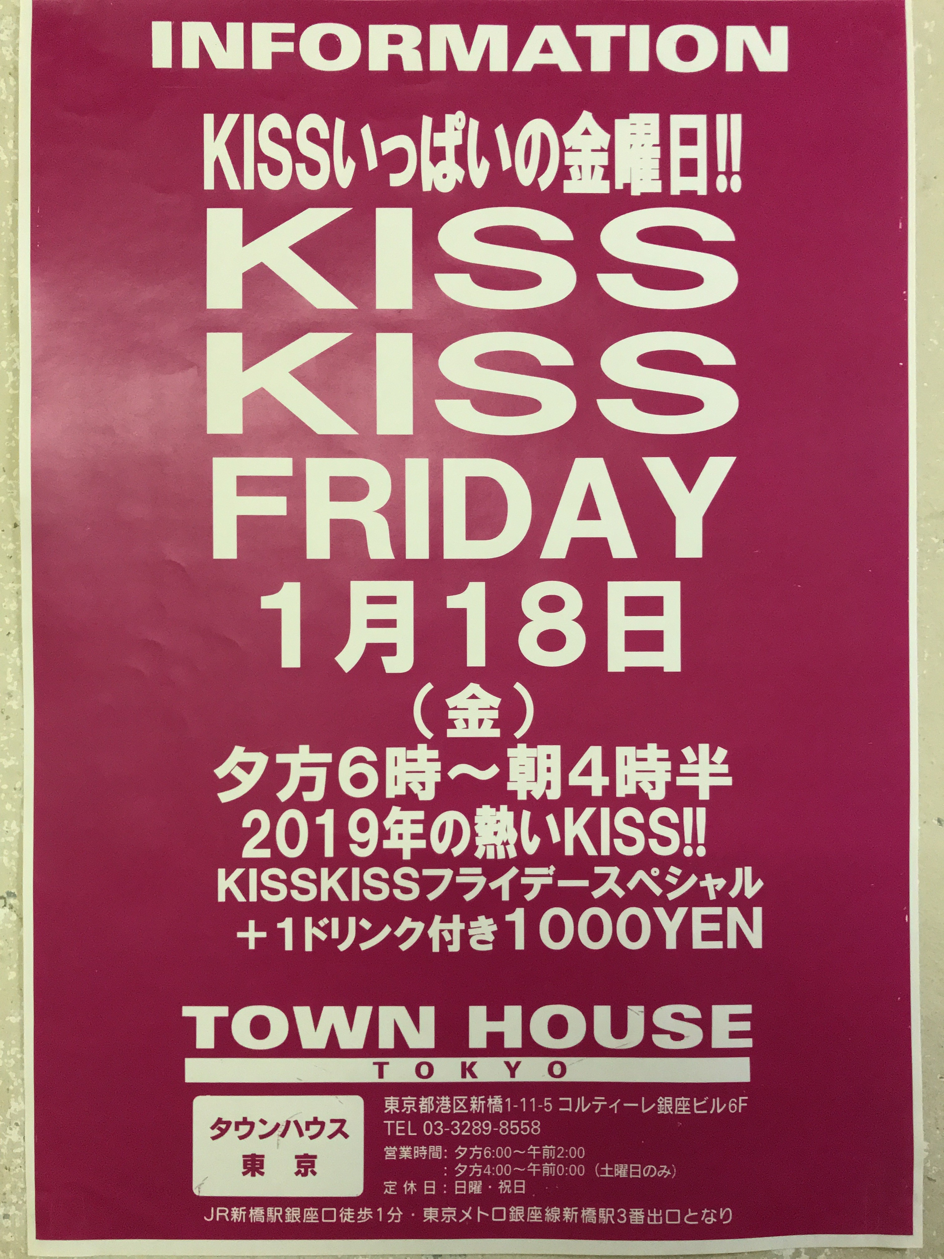 そして、いよいよ来週金曜日は、タウンハウス一番人気の金曜日、キスいっぱいの金曜日、KISS KISS FRIDAY