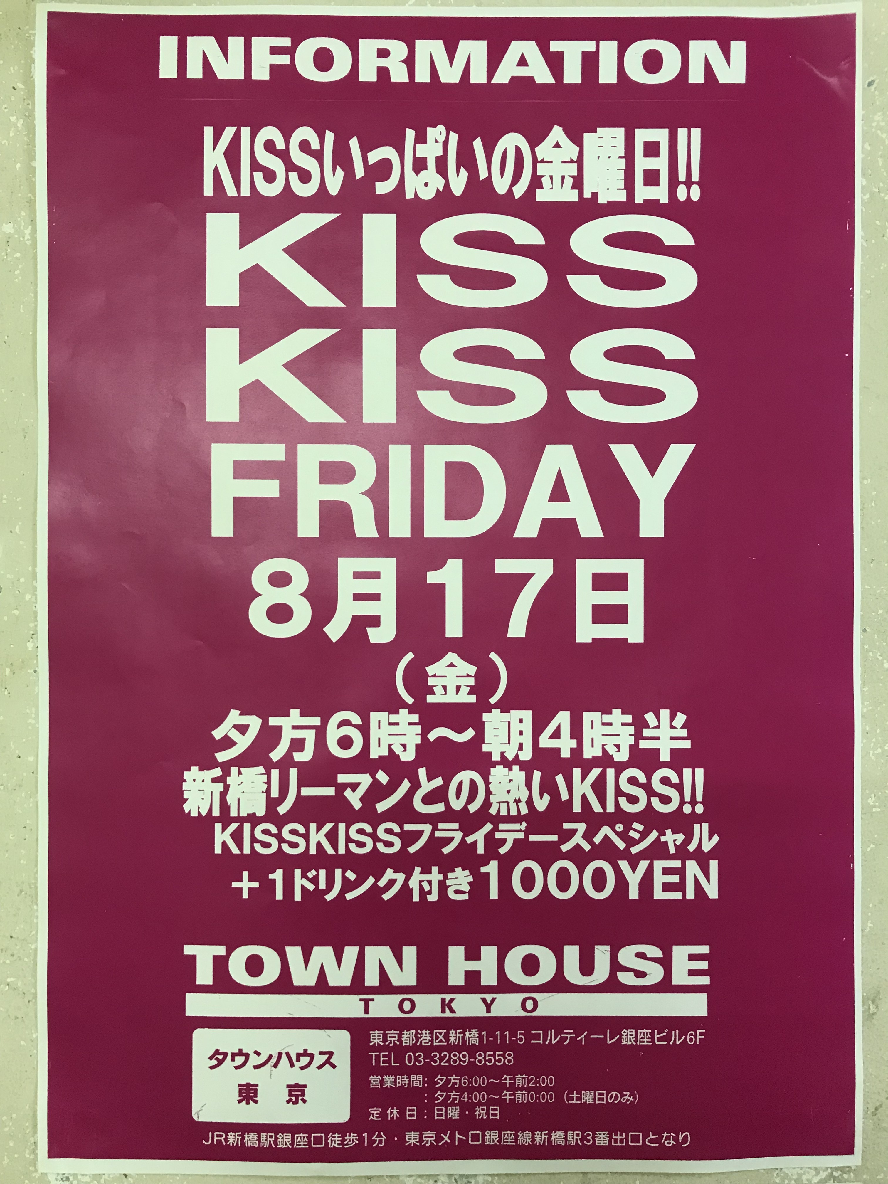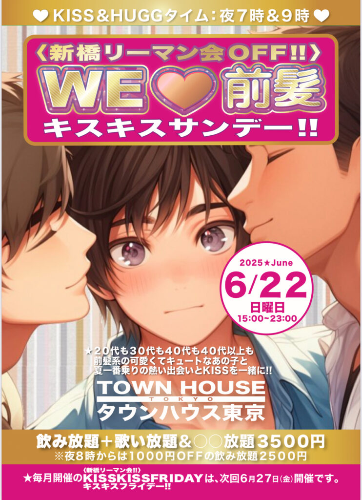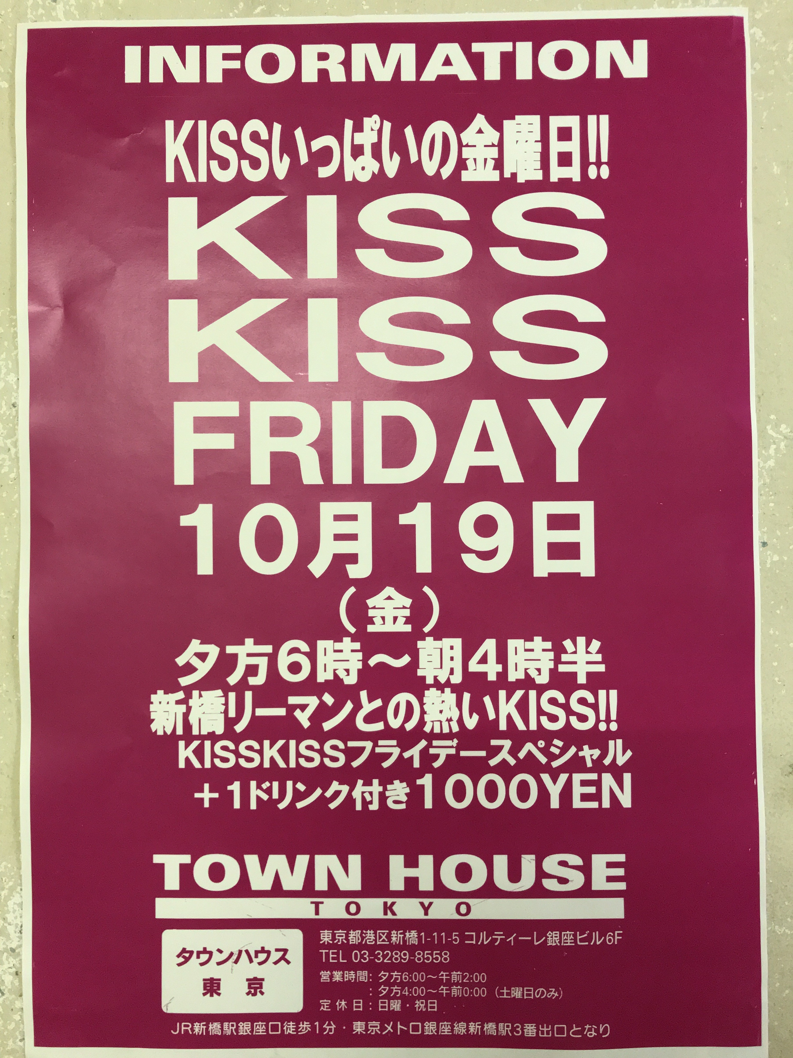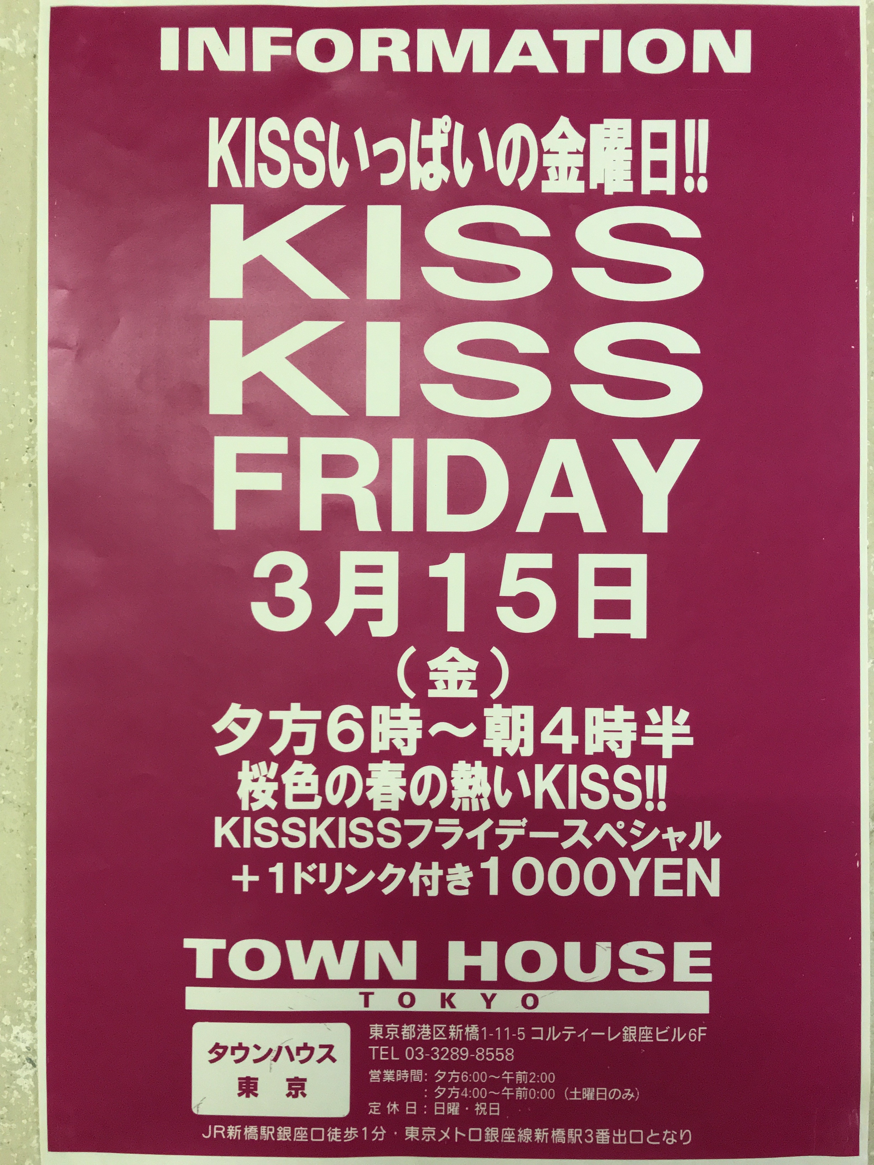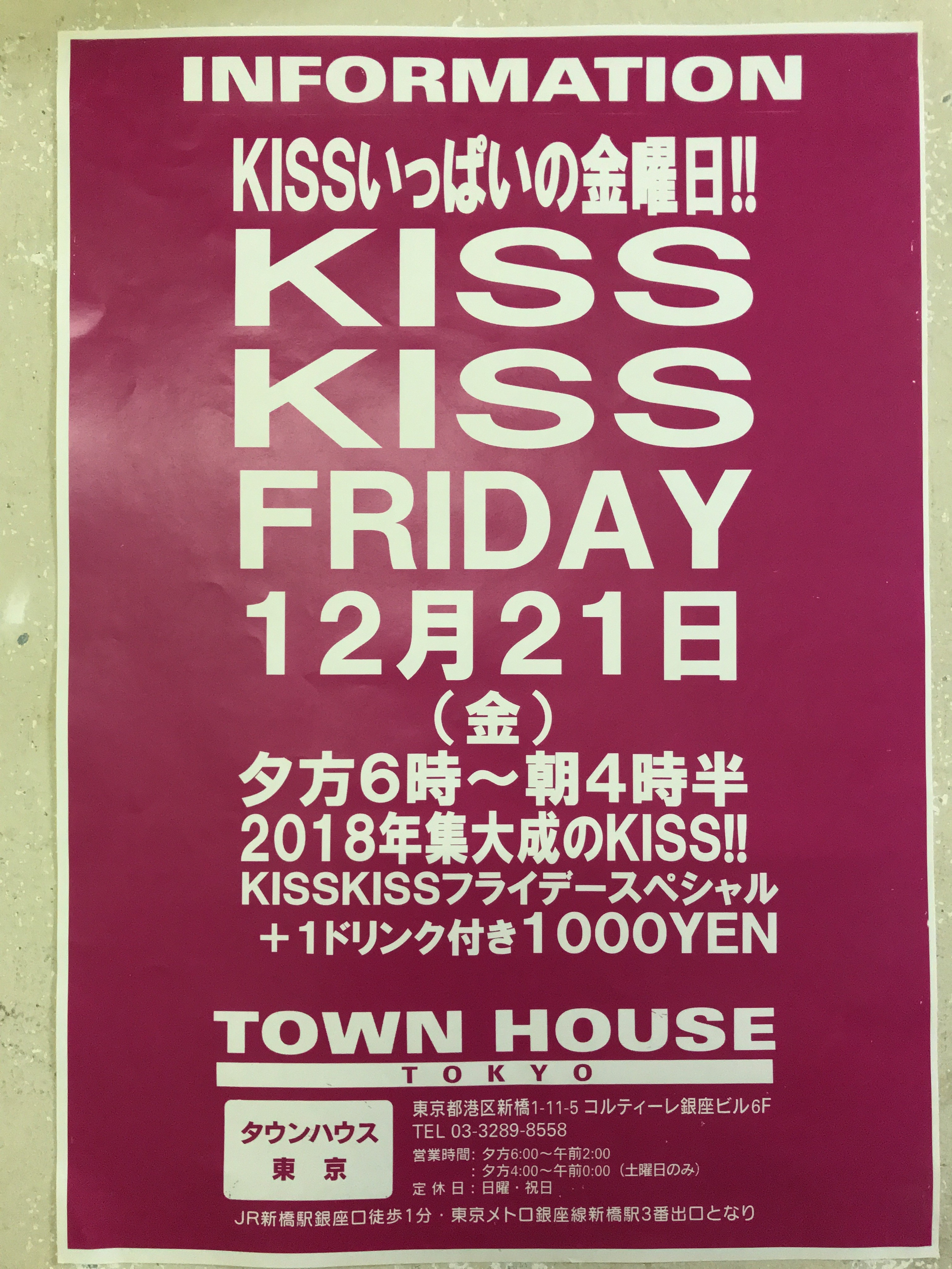 そして、いよいよ来週金曜日は、タウンハウス一番人気の金曜日、キスいっぱいの金曜日、KISS KISS FRIDAY