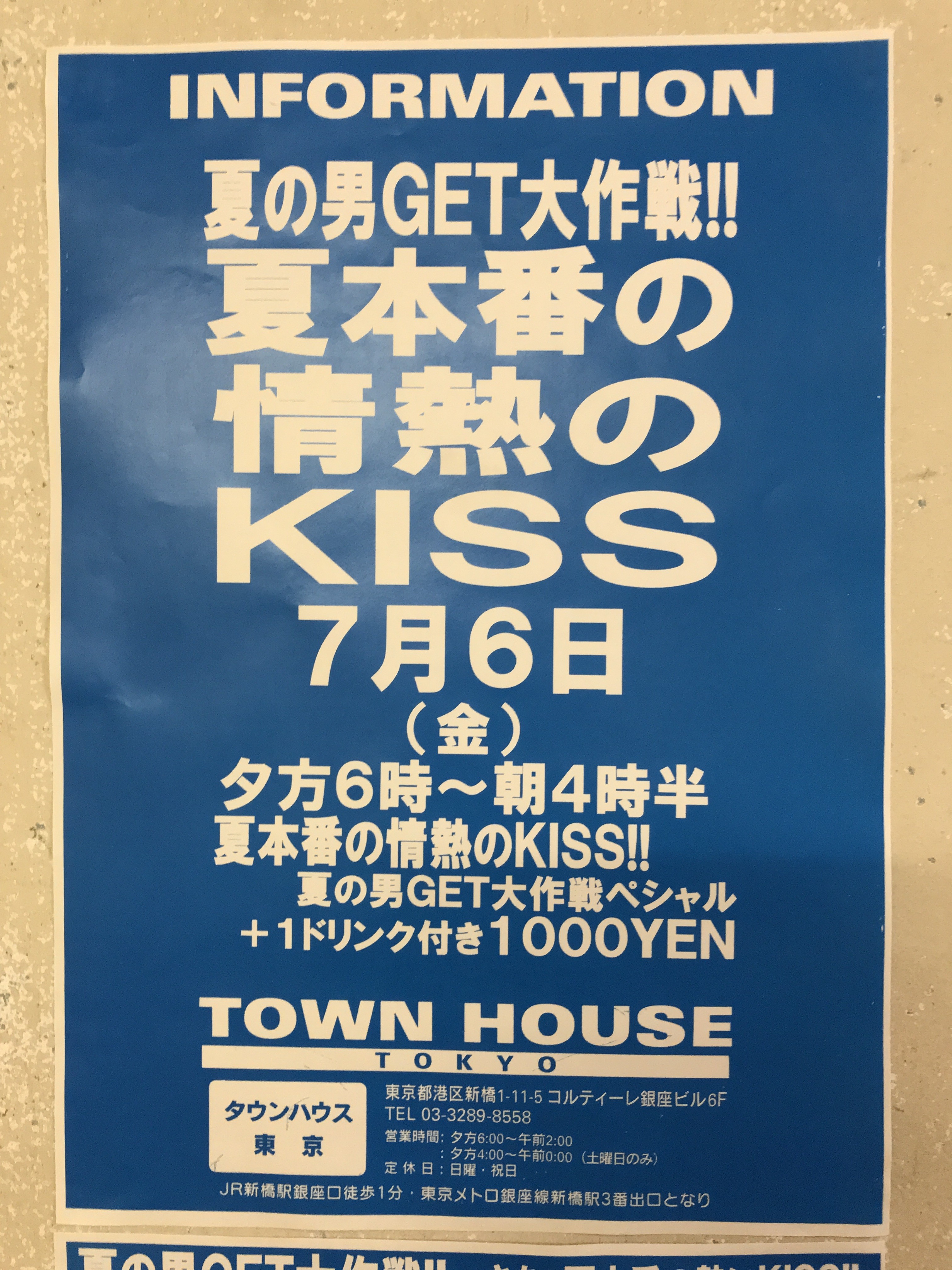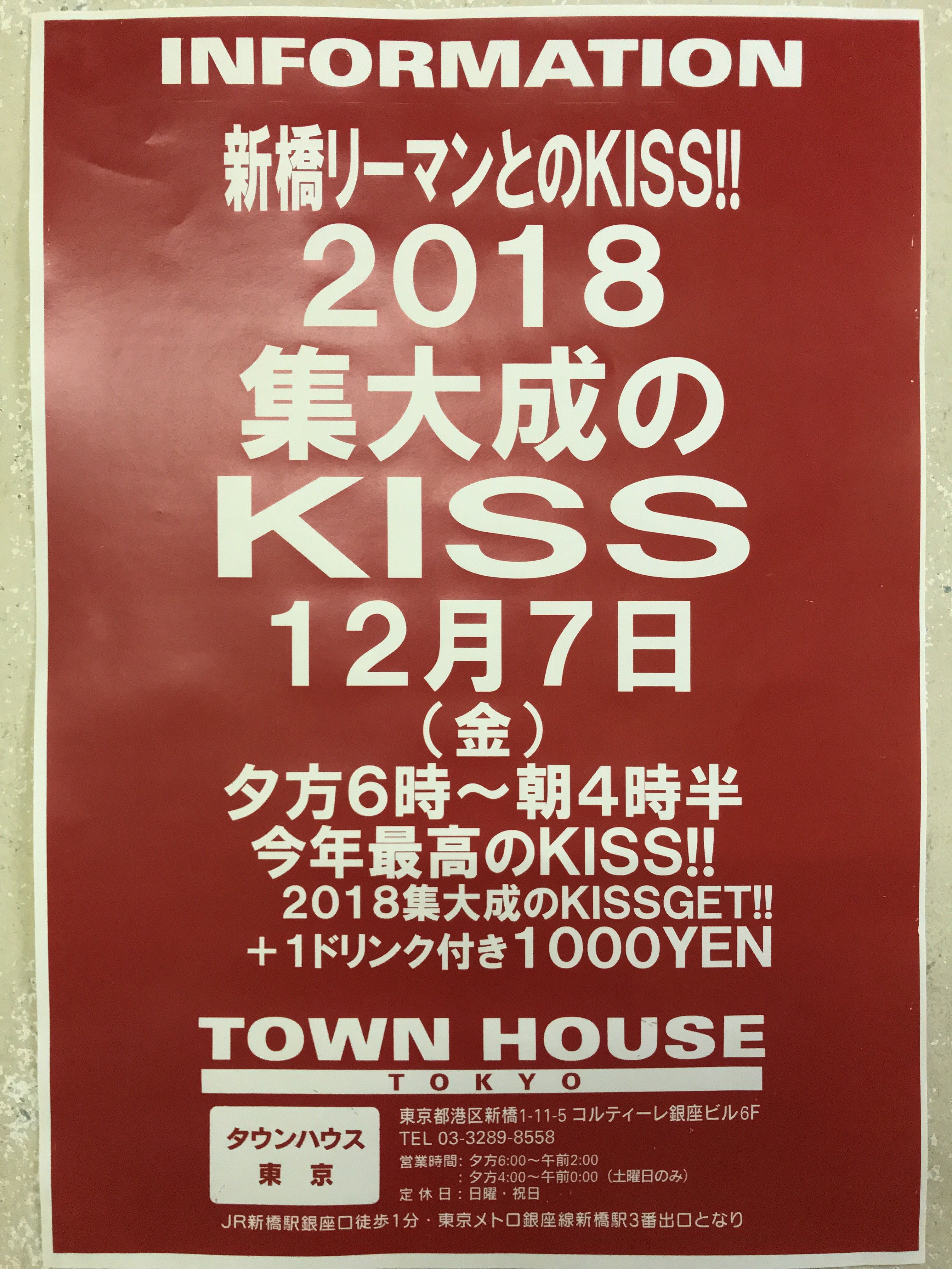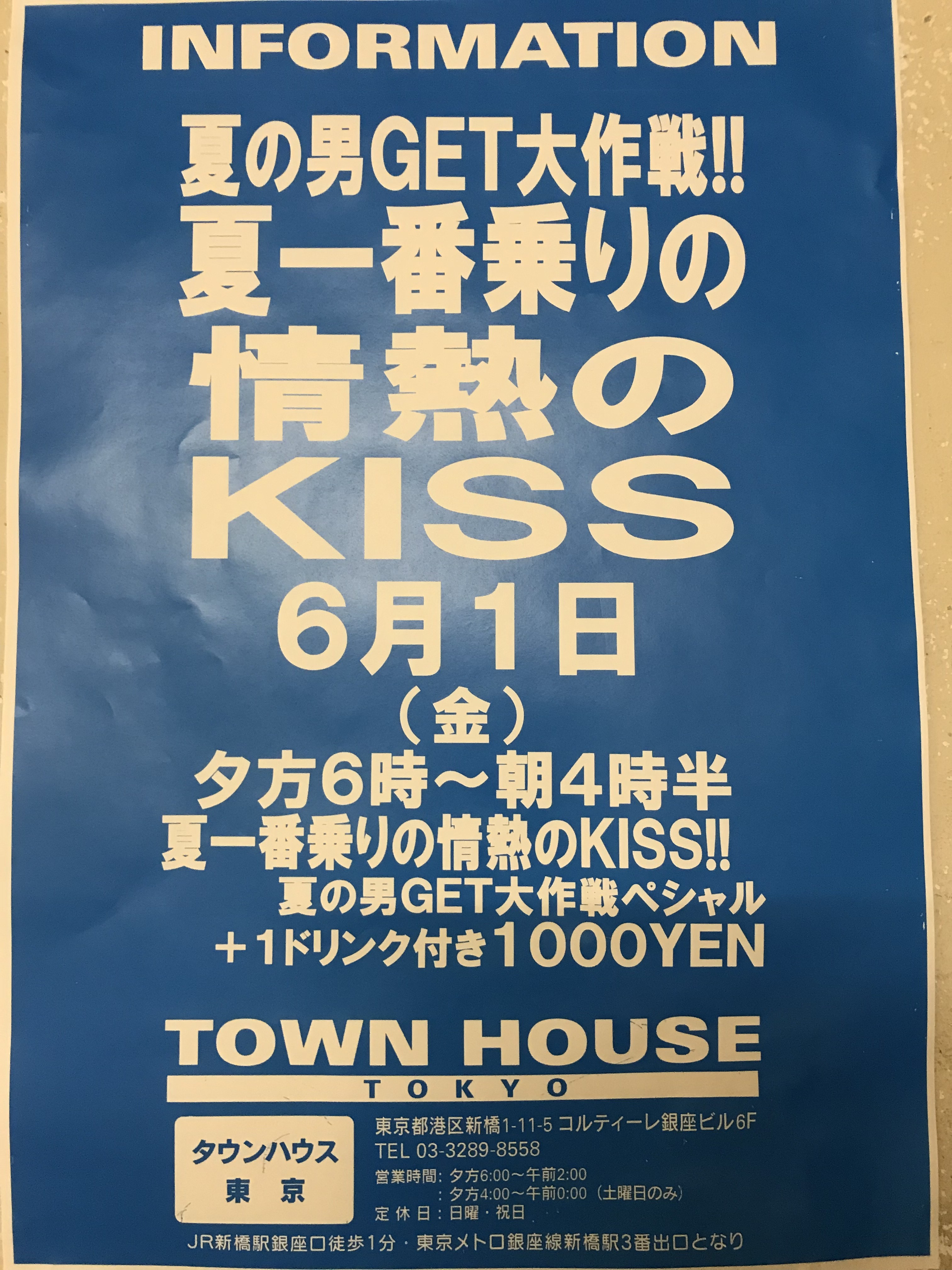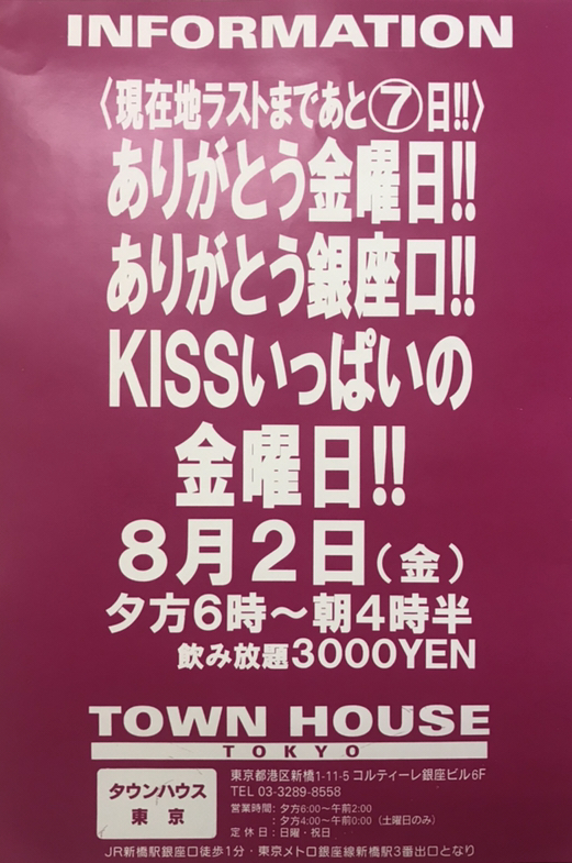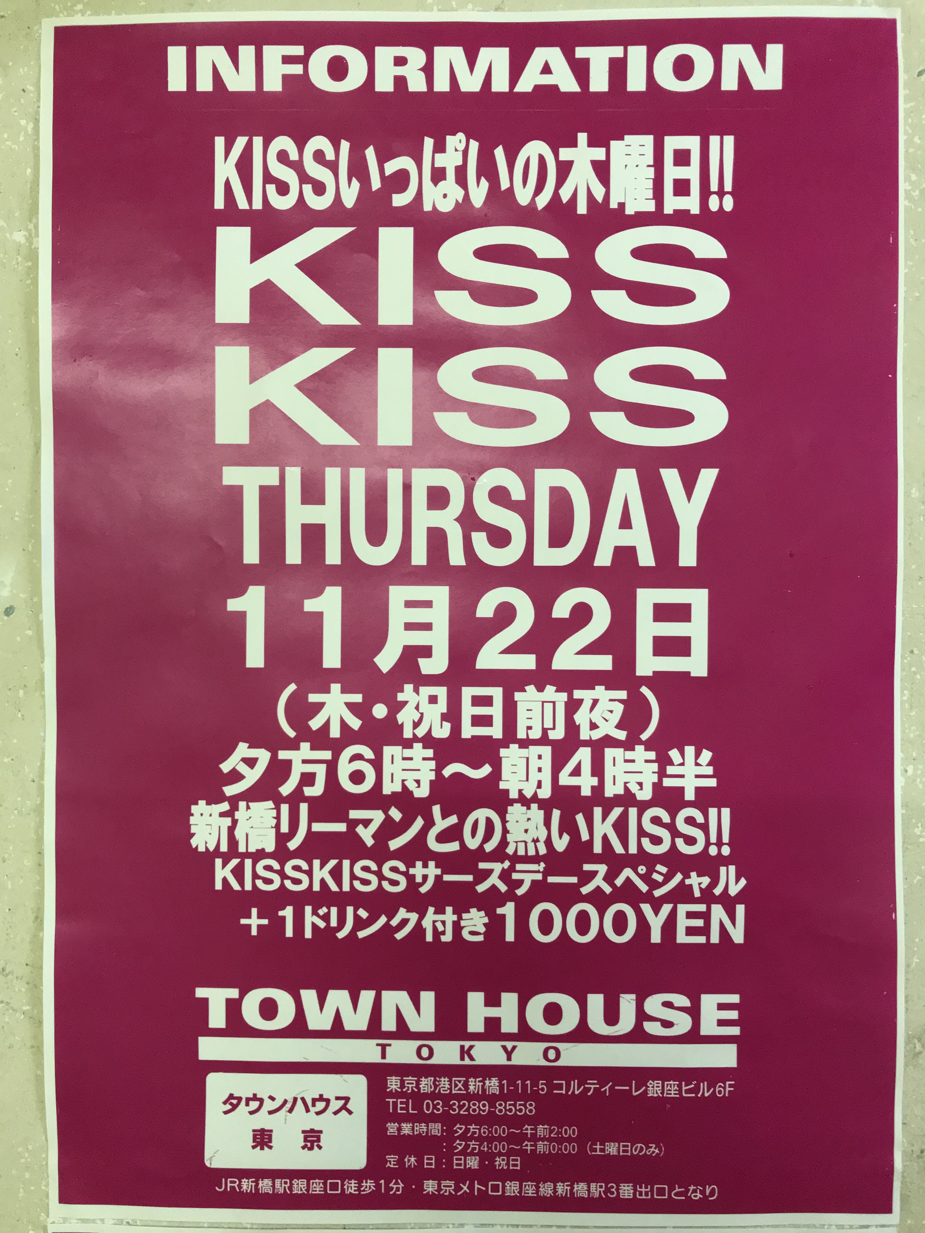 そして、いよいよ来週金曜日は、タウンハウス一番人気の金曜日、キスいっぱいの金曜日、KISS KISS FRIDAY