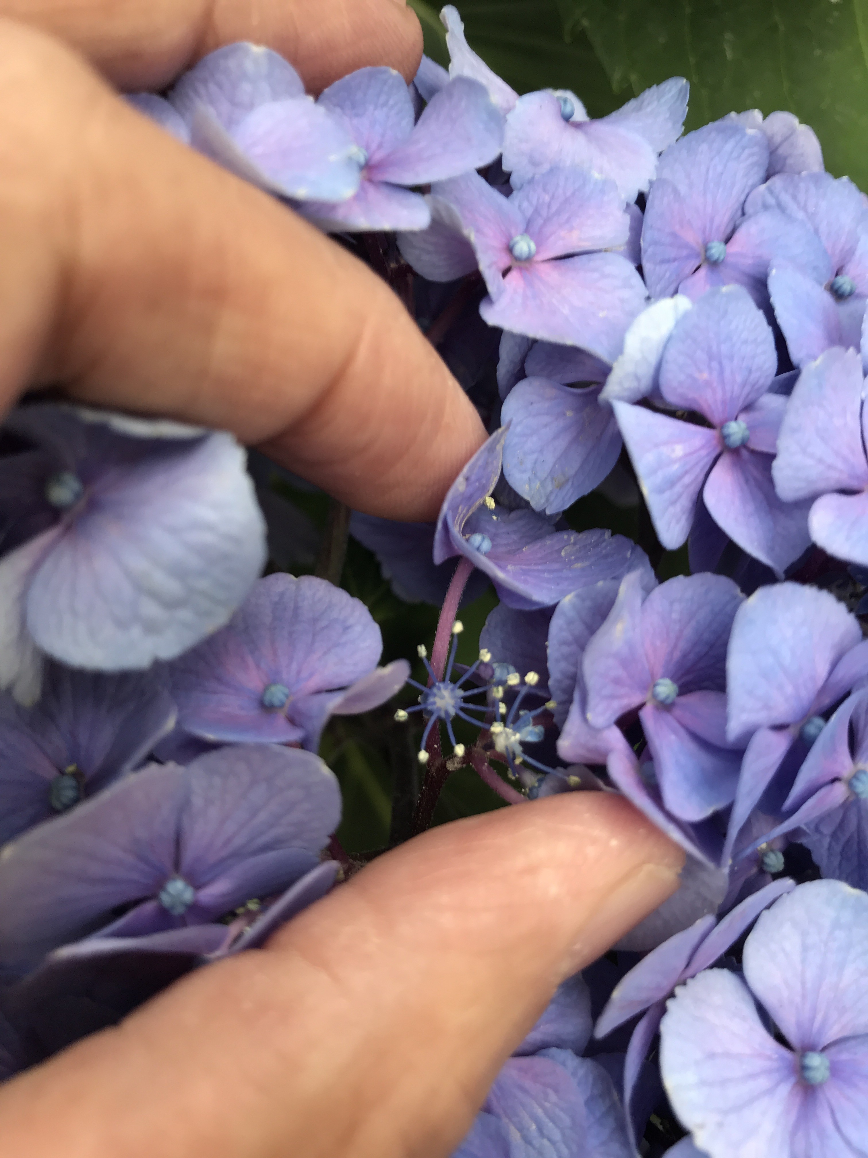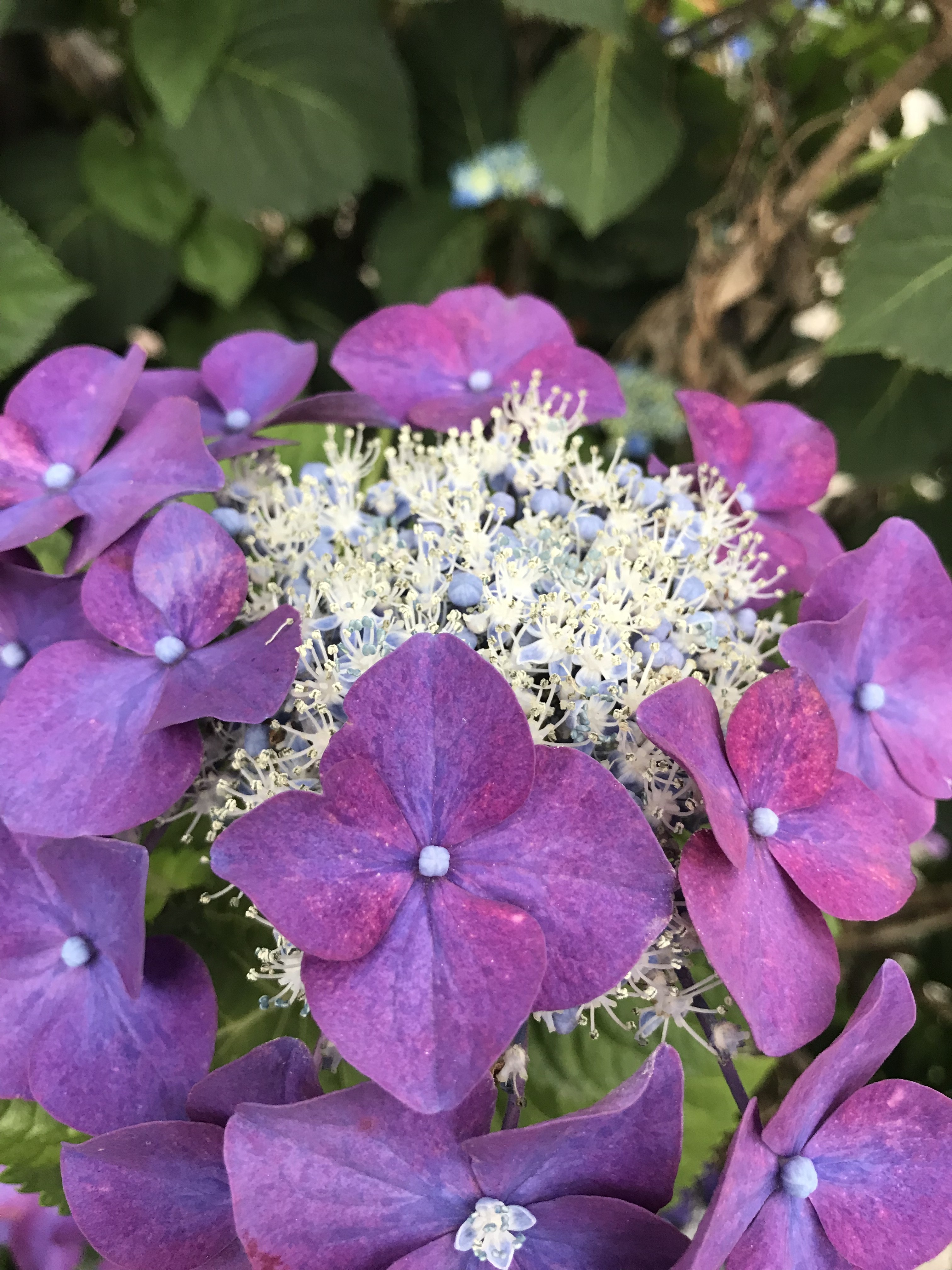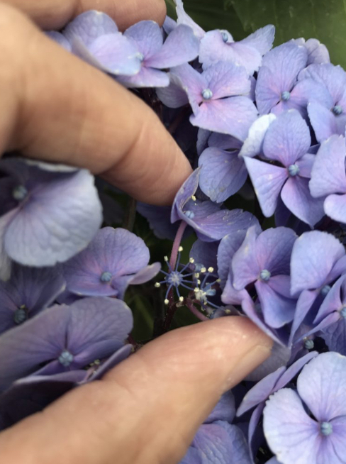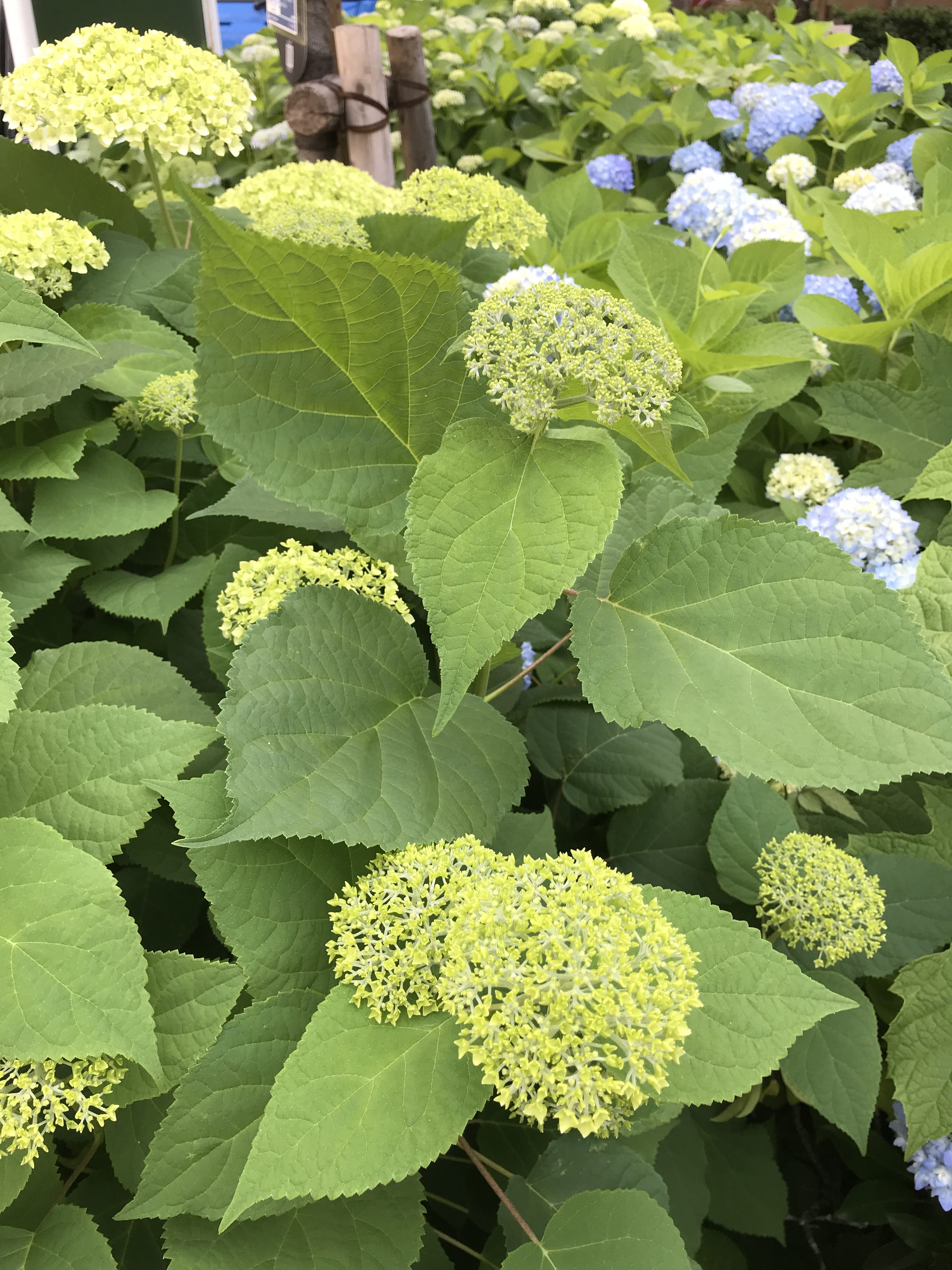 そして、次の主役のあじさい。まだまだ、葉っぱと同じ色のつぼみのあじさいが多いですが、陽当たりがいいからでしょうか? そろそろ咲き始めたあじさいも。