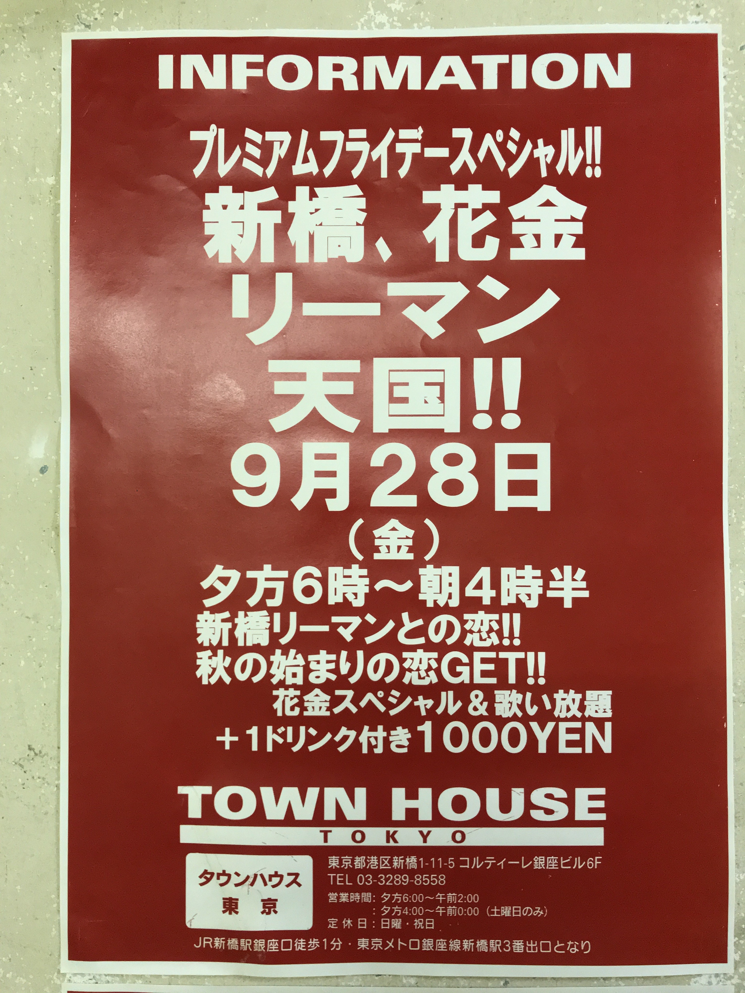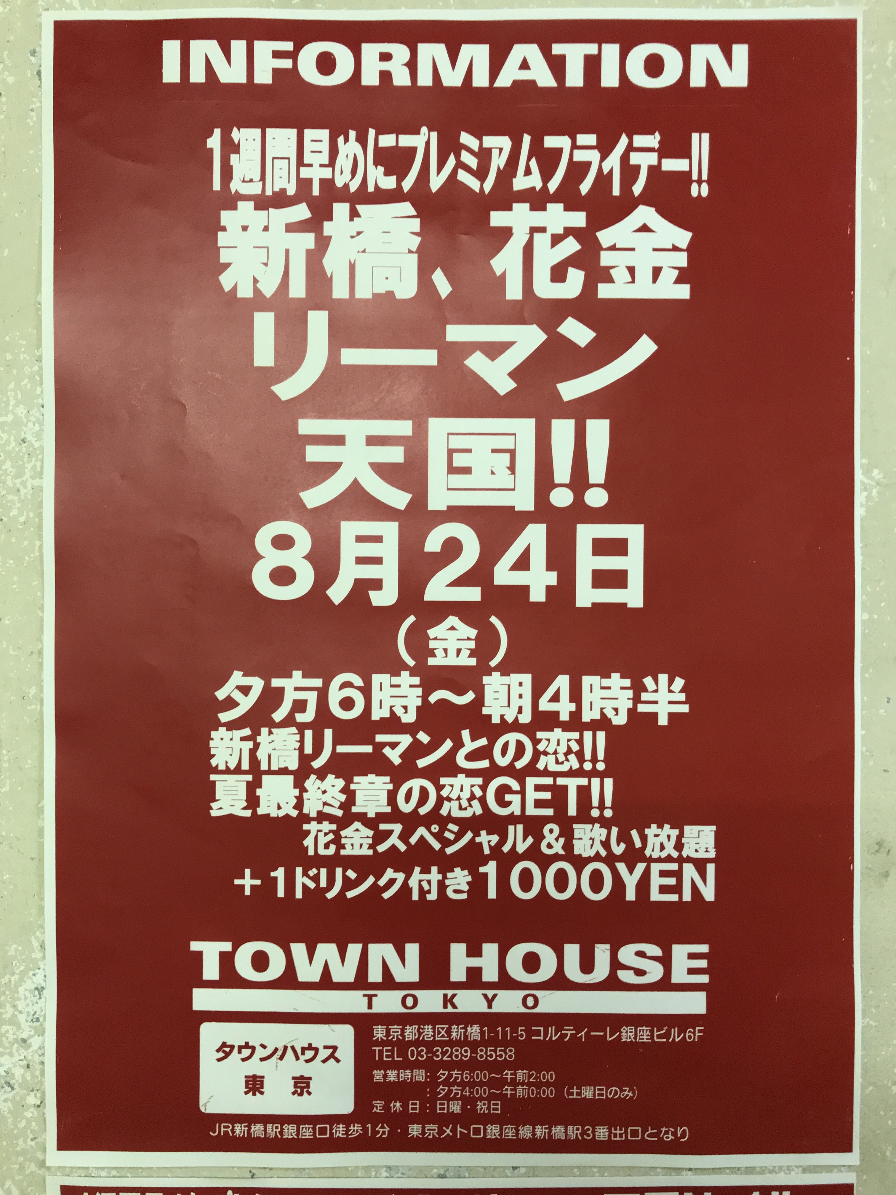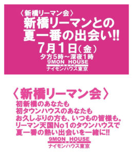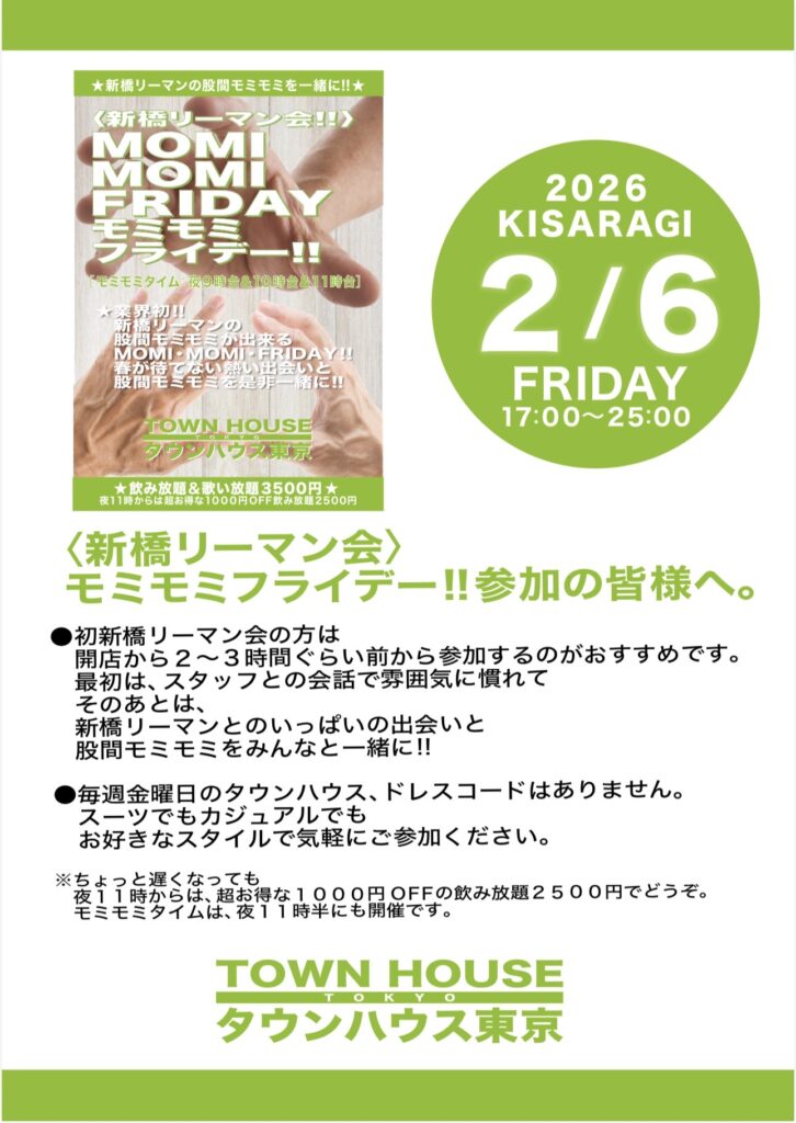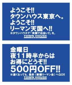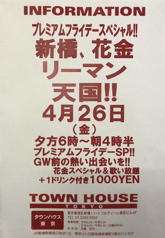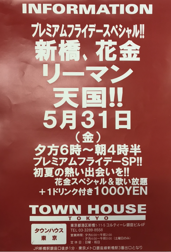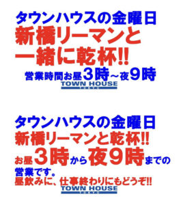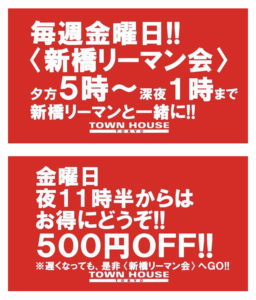 毎週金曜日は、新橋リーマンとの熱い出会いと語らいのタウンハウス。