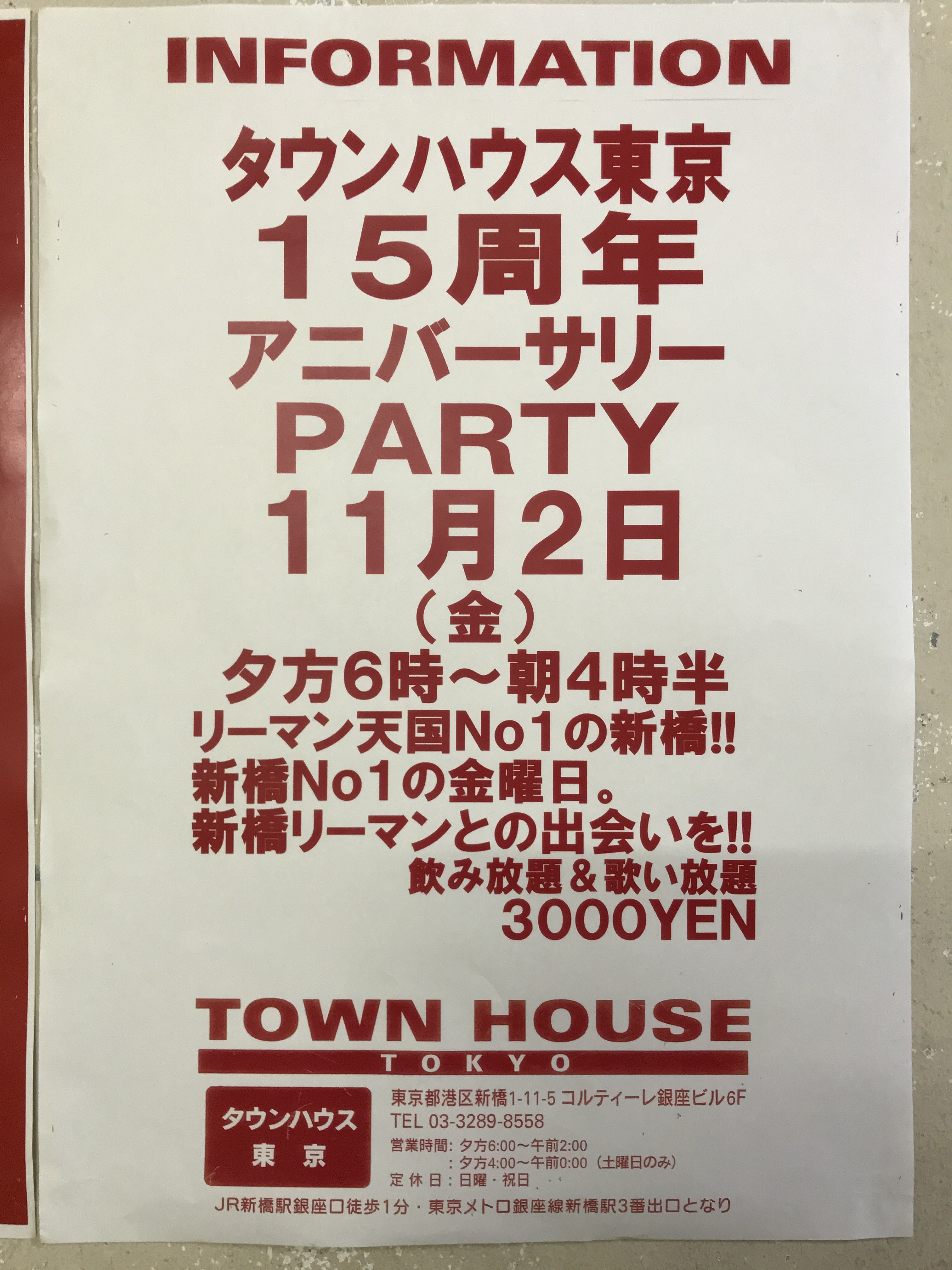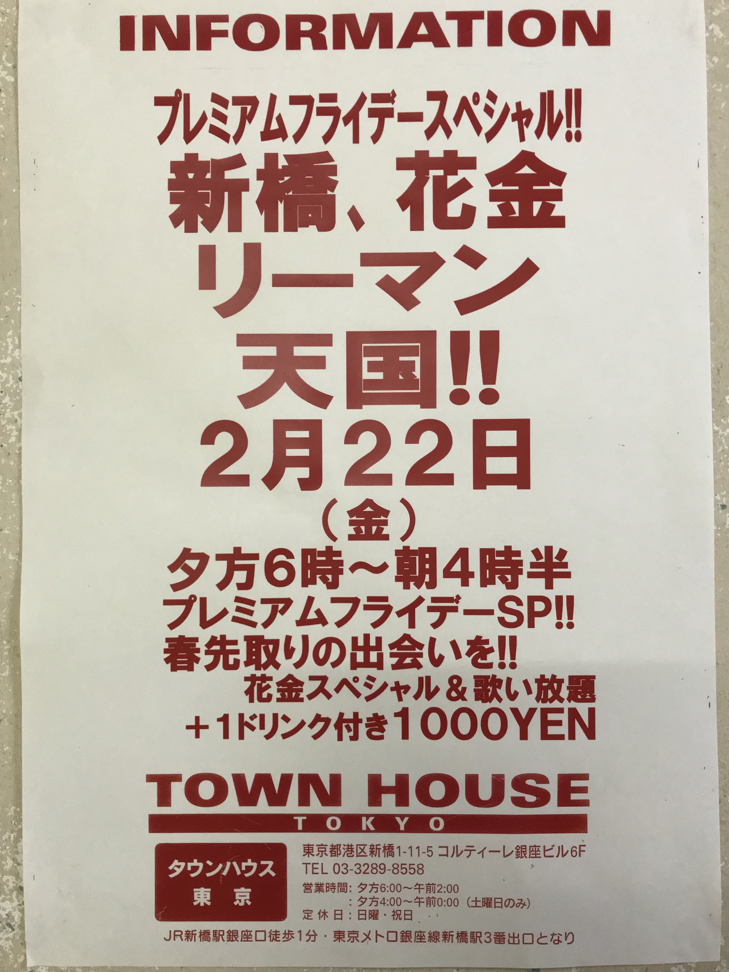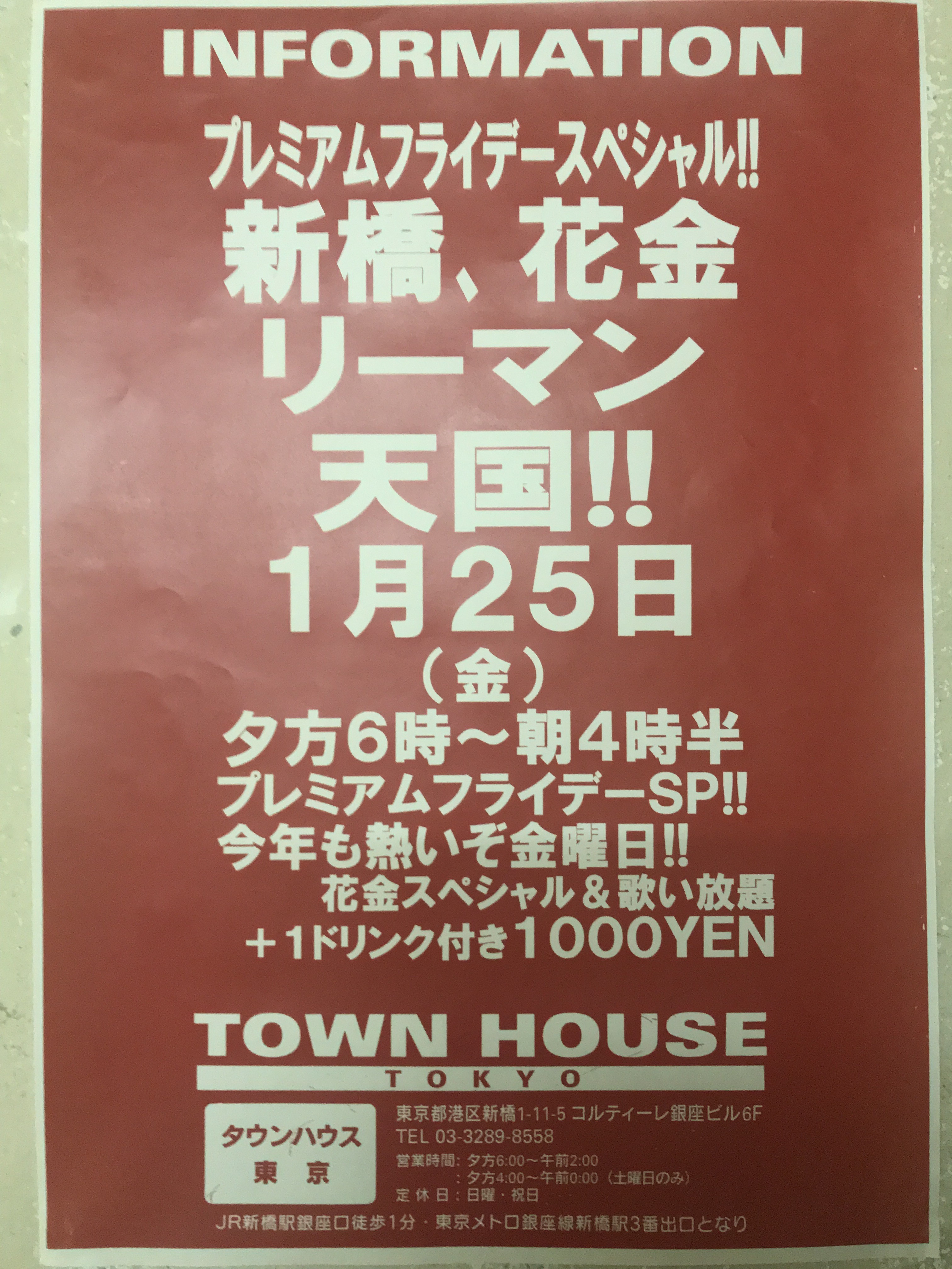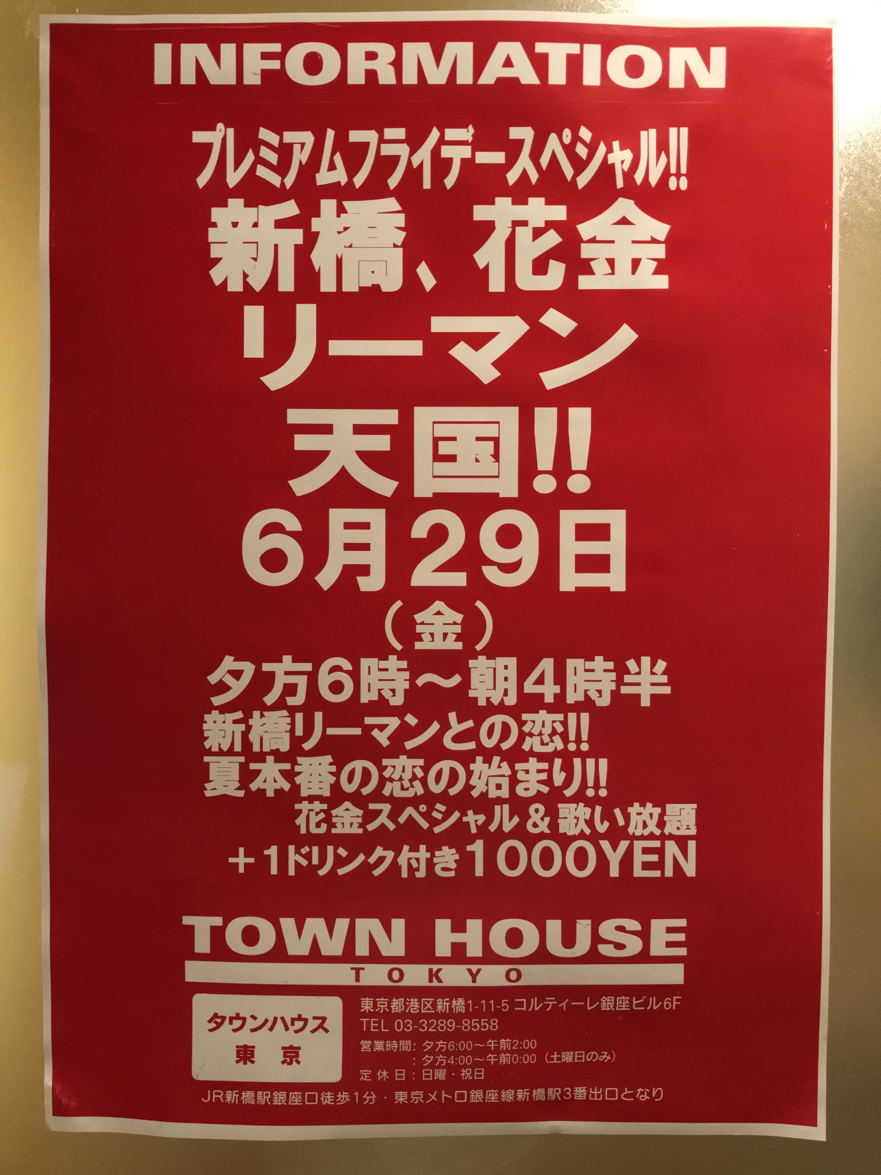 毎週金曜日は、新橋リーマンとの熱い出会いと語らいのタウンハウス。