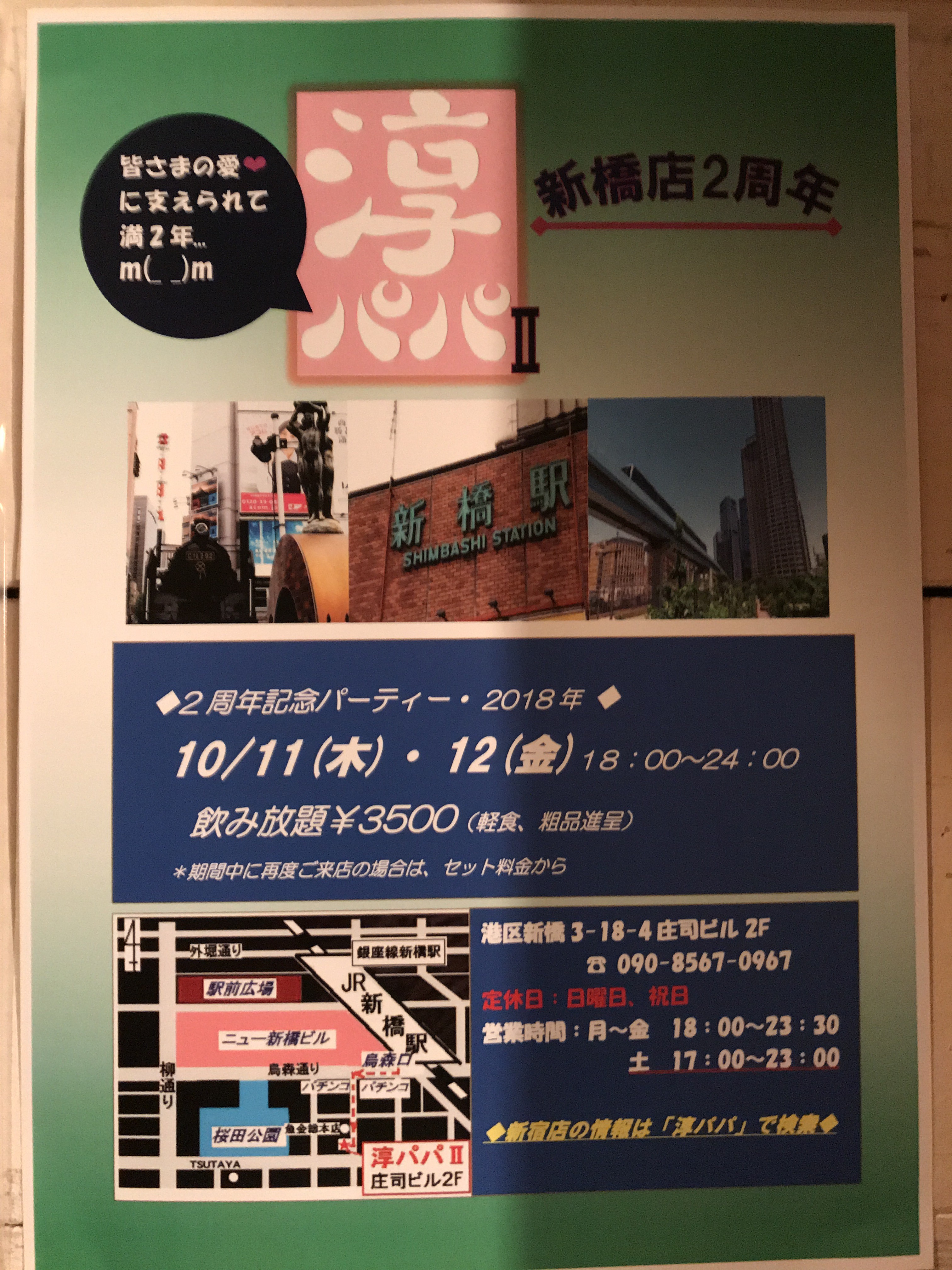 10時頃から11時頃が一番賑やかな時間帯で、夕べもその時間は入場制限で、少しお待たせいたしましたが、3分から5分ぐらいだと思いますので、お帰りになった方も、ぜひ少しだけ待って、新橋リーマンとの熱い金曜日を一緒に。
