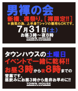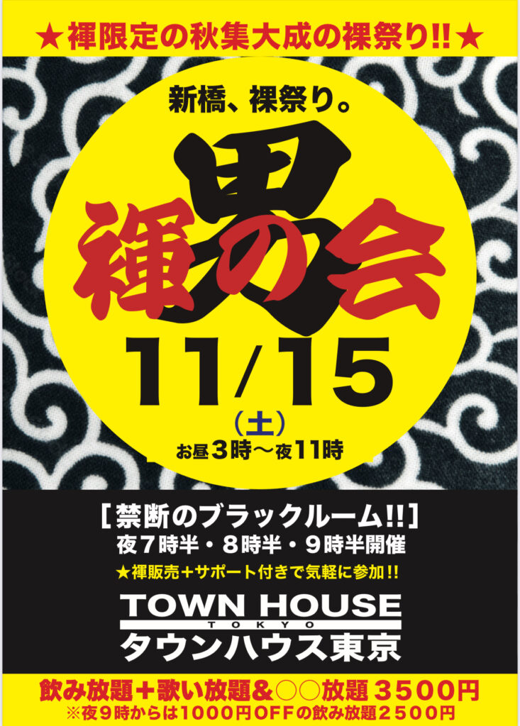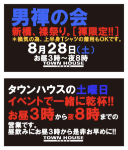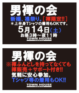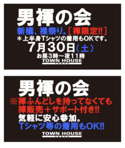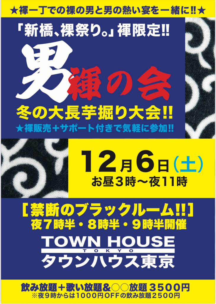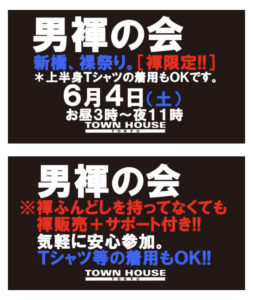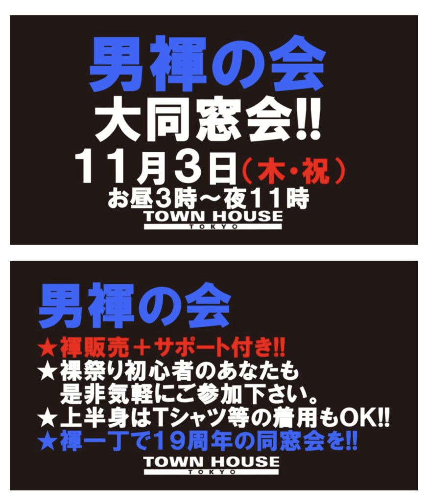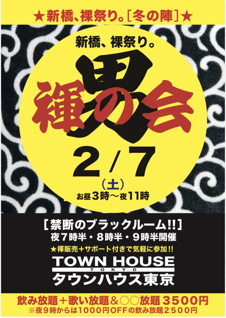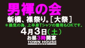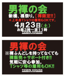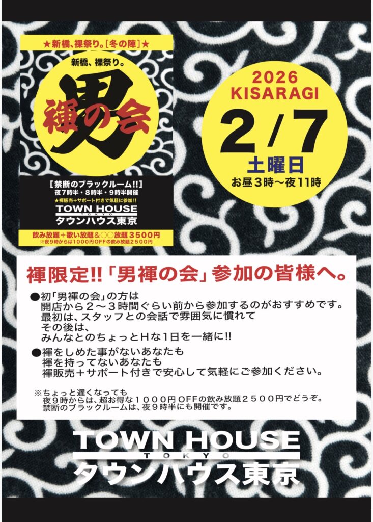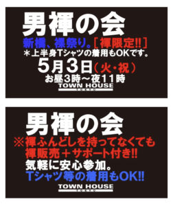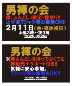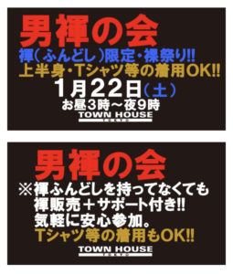 今週・土曜日のタウンハウスは、「男褌の会」[冬の陣]を開催です。