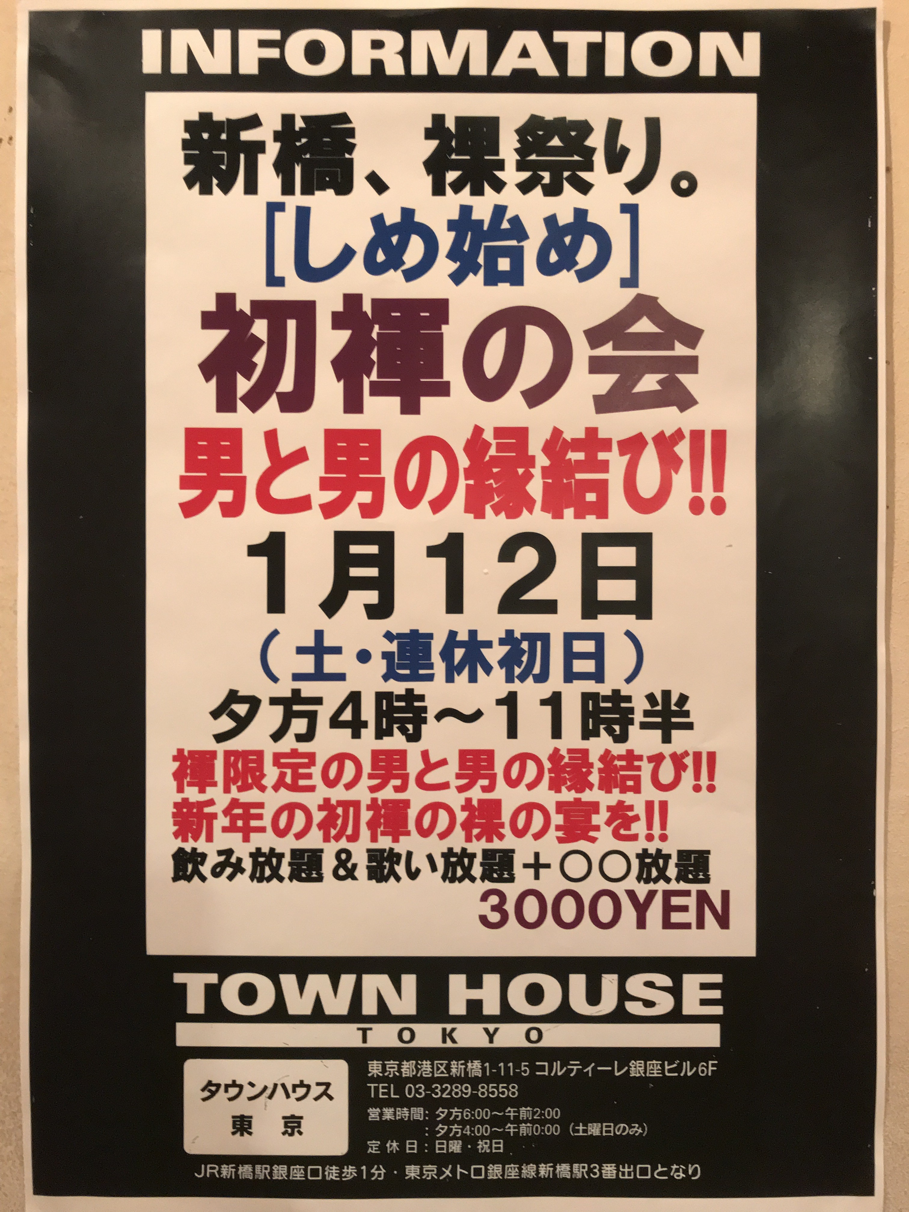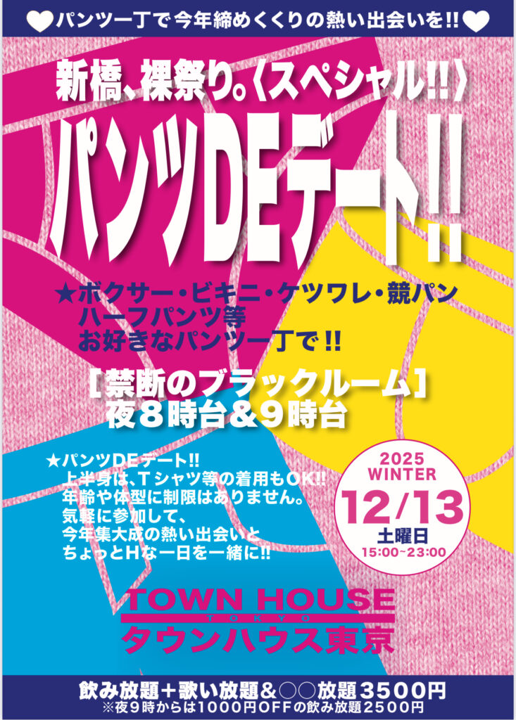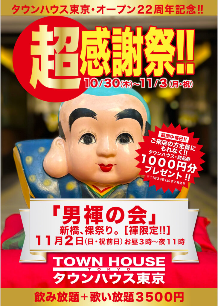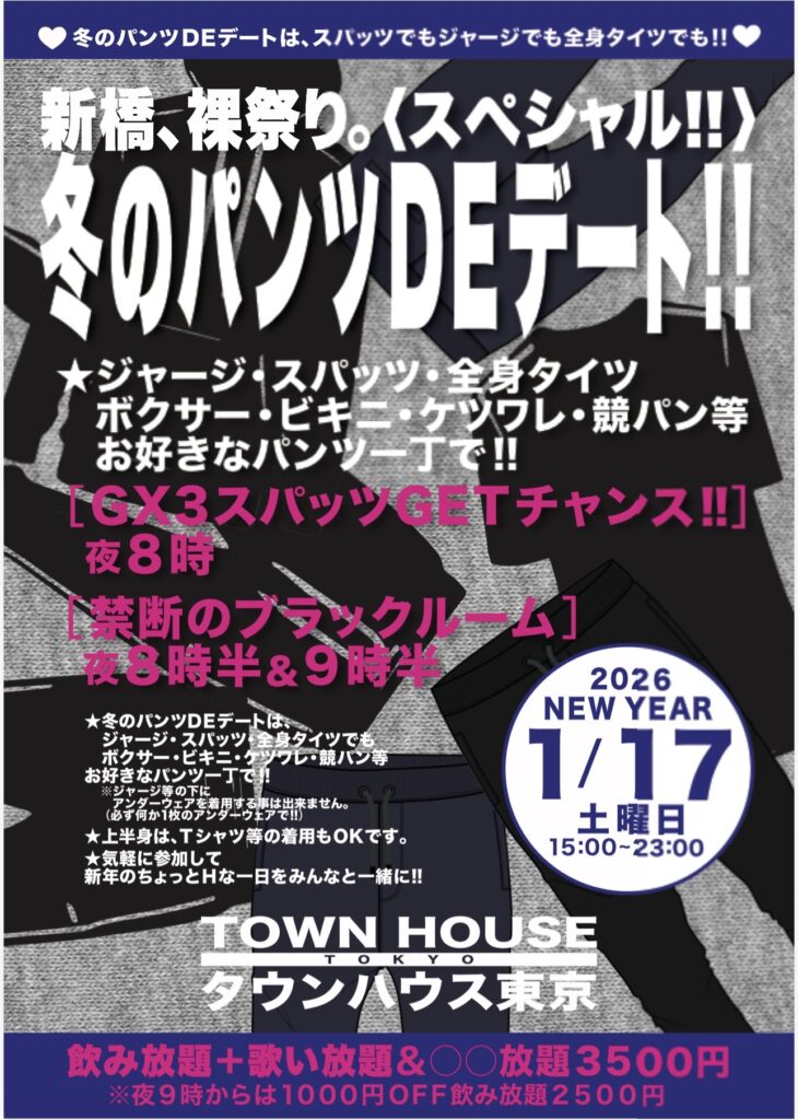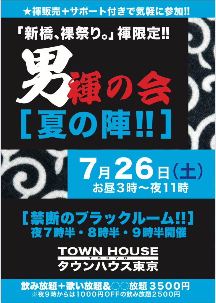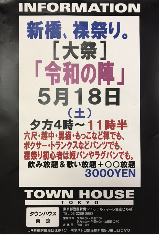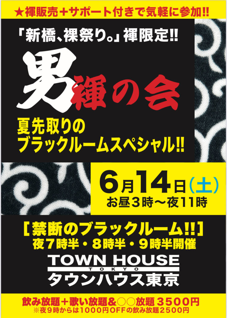 今週・土曜日のタウンハウスは、「男褌の会」[冬の陣]を開催です。