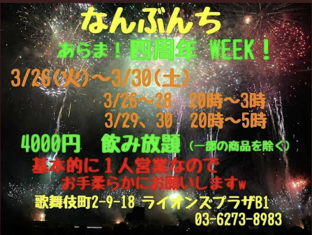 ちょっと遅くなっても、夜10時からのご参加は、超お得な1000円OFF・飲み放題2500円でどうぞ😊