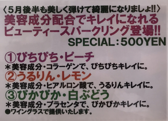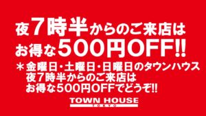 ゴールデンウィーク明けからのヒンヤリは、まだ続いてますが、雨も上がって、今夜は超お得な水曜日。タウンハウスの毎週水曜日は、超お得に乾杯!!