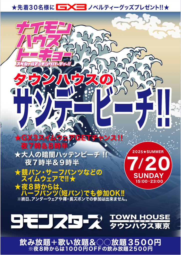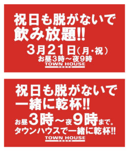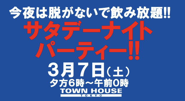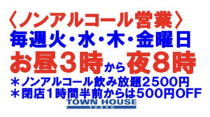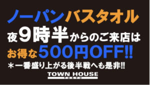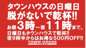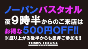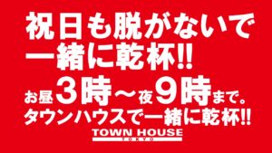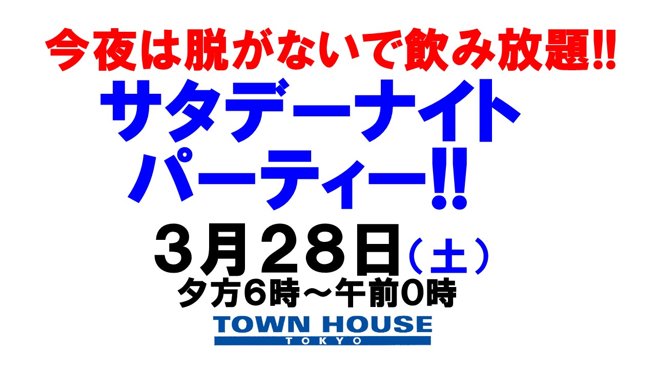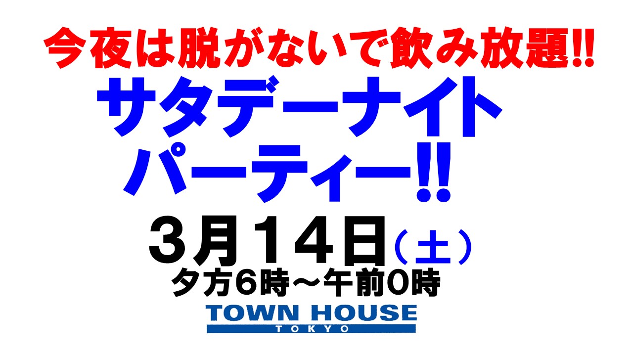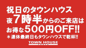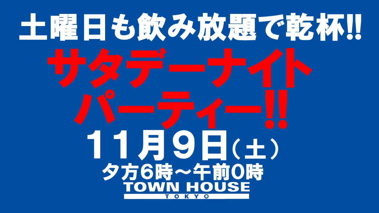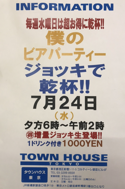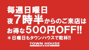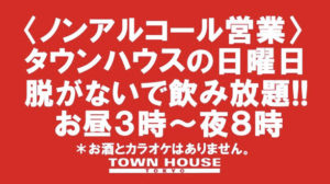 毎週、水曜日の超お得なタウンハウス。今夜は、いつものハイボールが、2倍のメガサイズで登場の、「僕のハイボールパーティー、メガジョッキで乾杯!!」