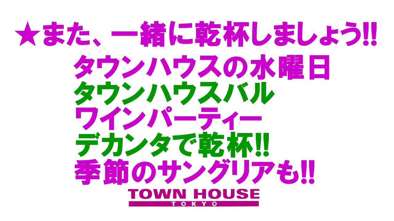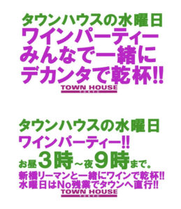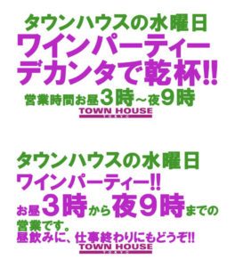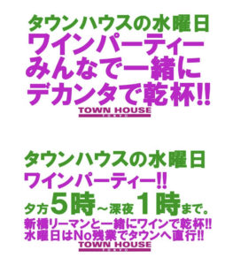 ⭐️毎週・木曜日のタウンハウスは、大人達が集う平日・木曜日のワインパーティー‼️を開催です。
