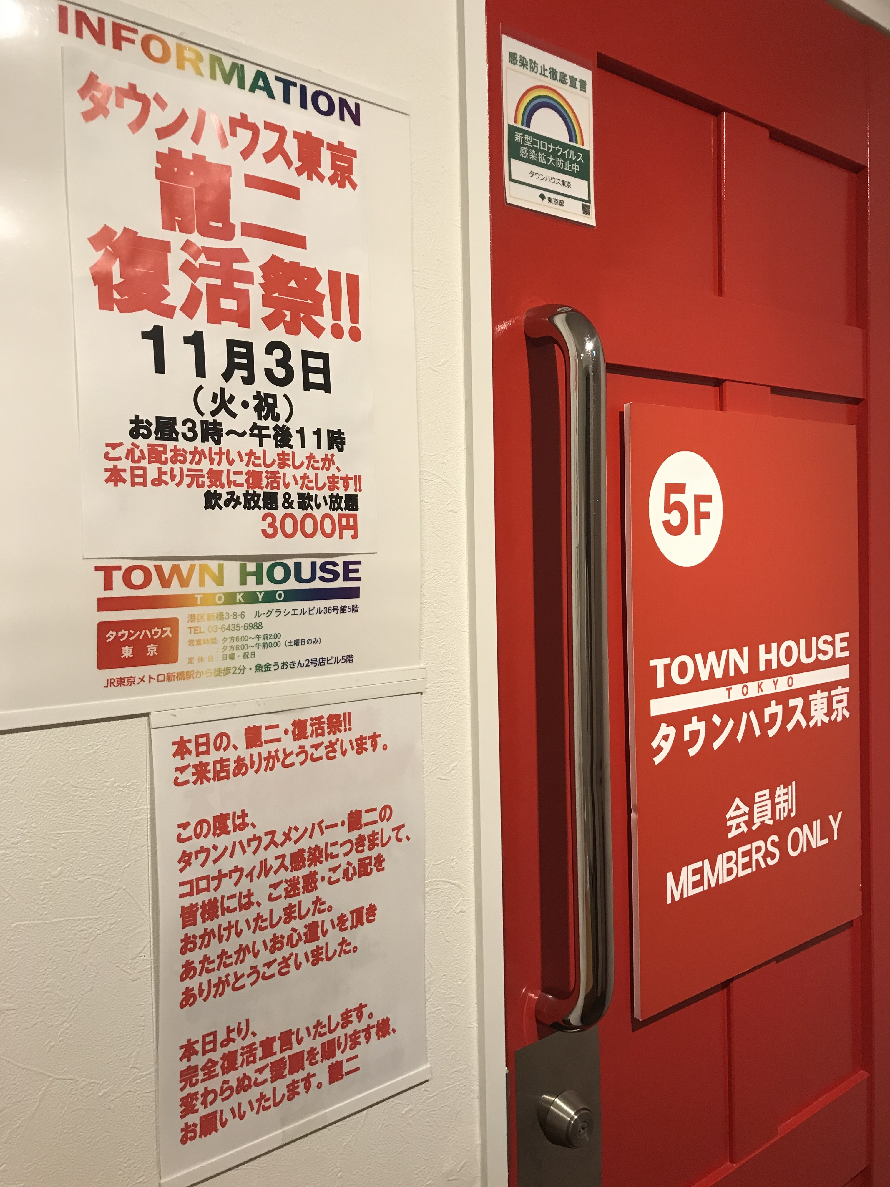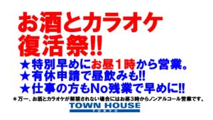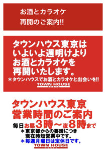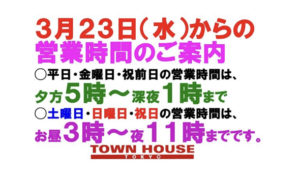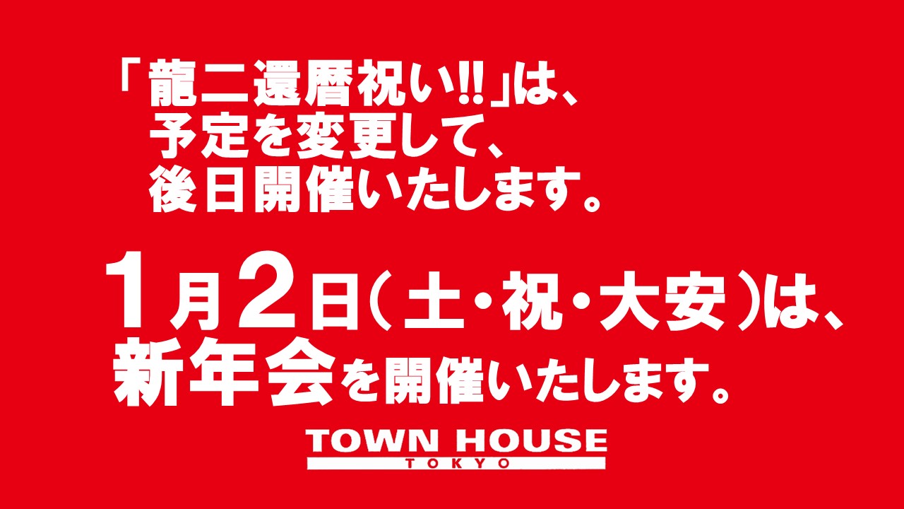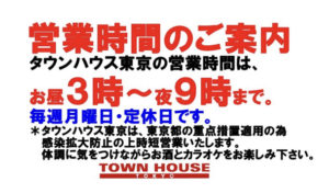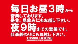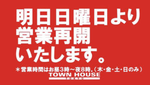 タウンハウスは、本日も6時開店です。 龍二