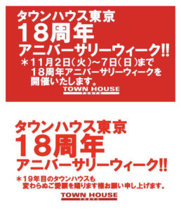 いつもタウンハウス東京をご愛顧頂きまして、ありがとうございます。