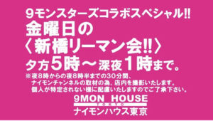 おひとりの方も、友達同士の方も、グループの方も、沢山の新橋リーマンと新橋リーマンLOVERSが集う金曜日です。