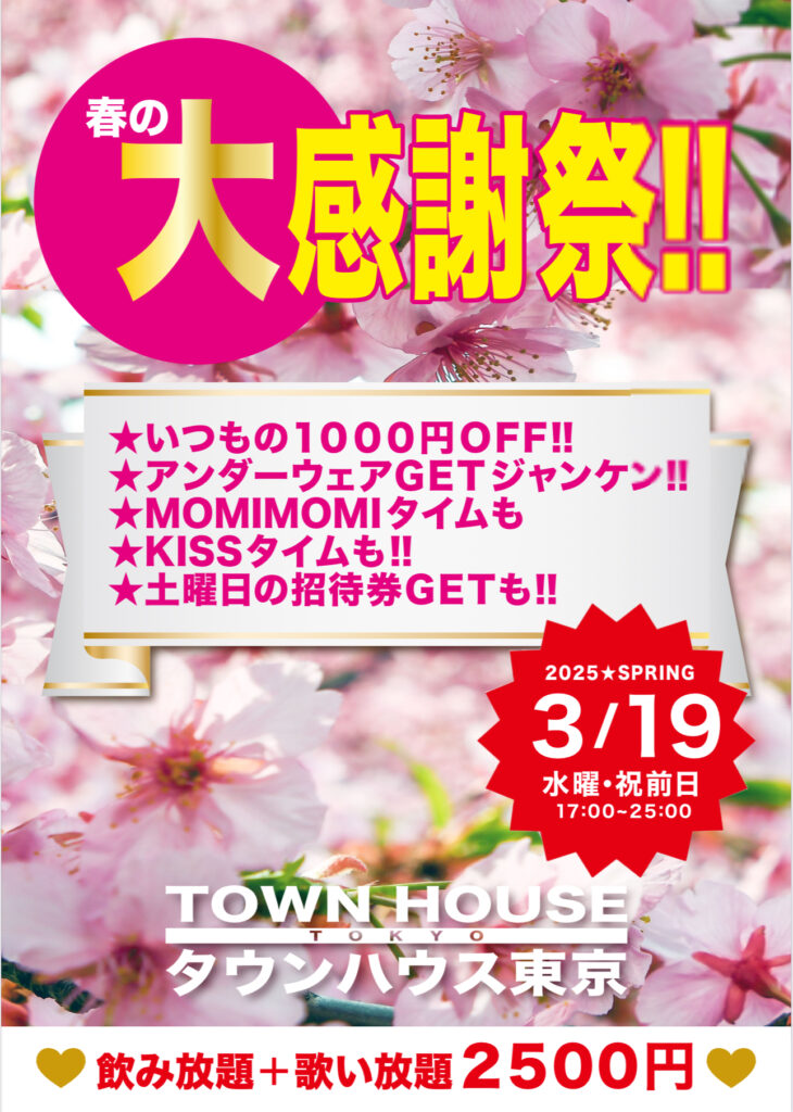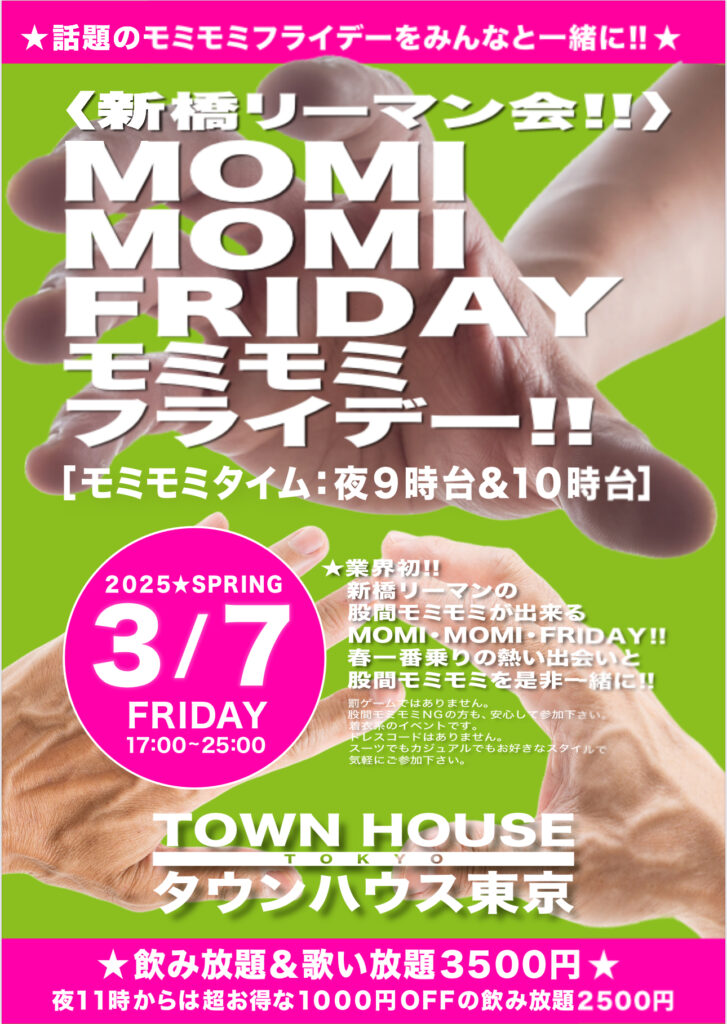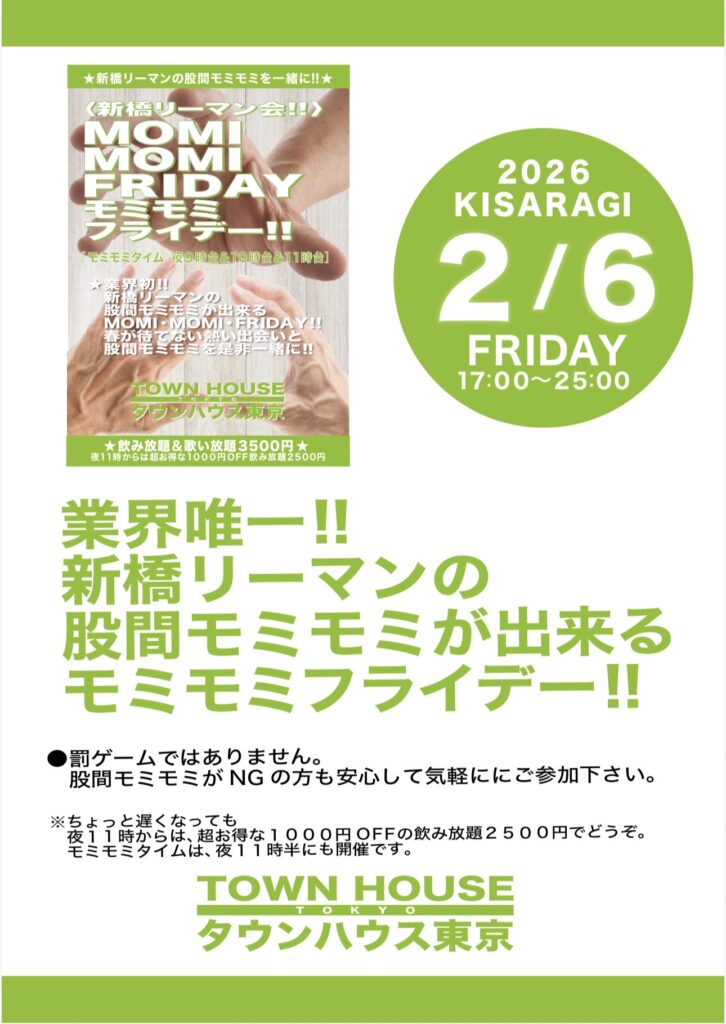明日・金曜日は、タウンハウス金曜日名物・モミモミフライデー‼️を開催です🤭